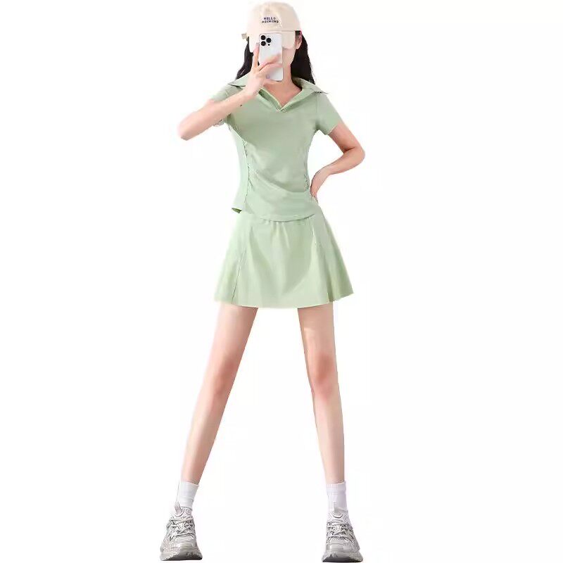 大码胖mm显瘦羽毛球服女夏季新款运动套装网球短裙跑步健身速干衣