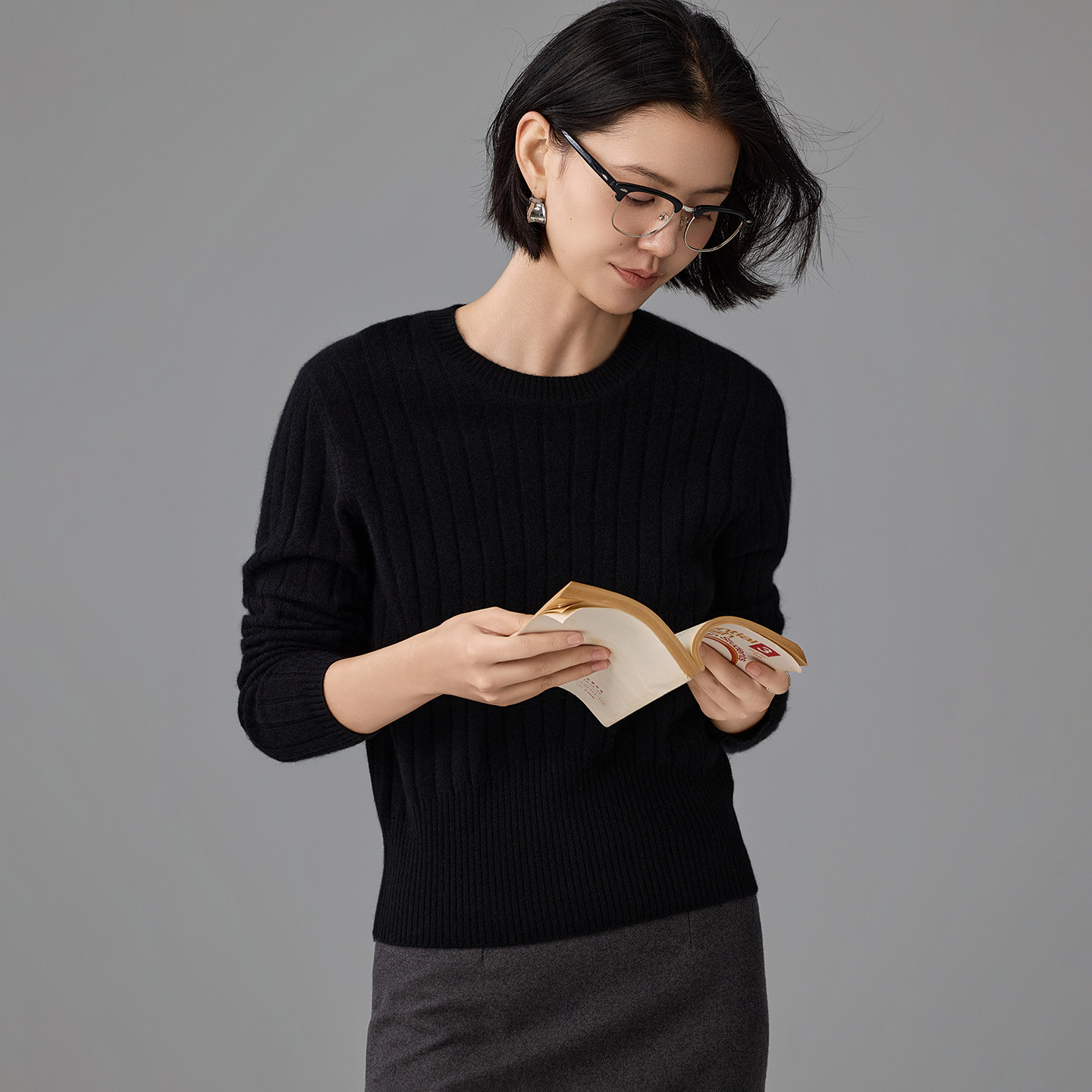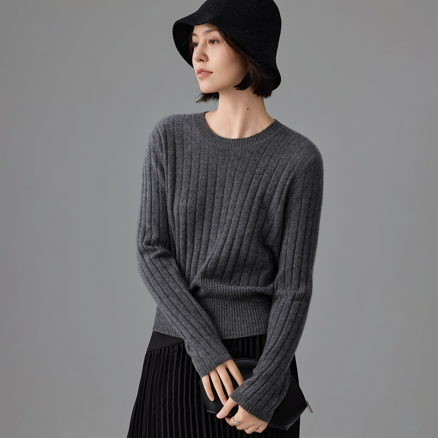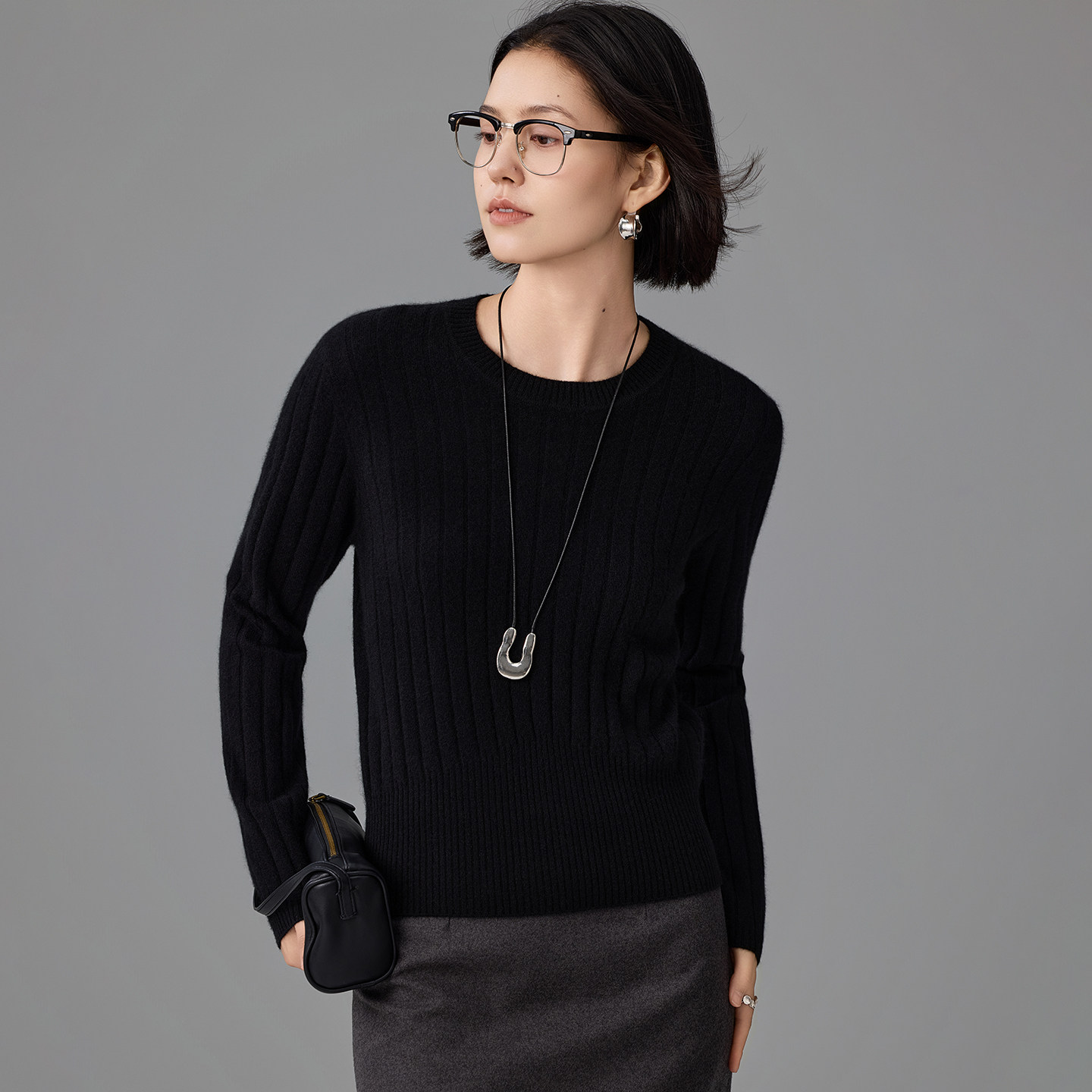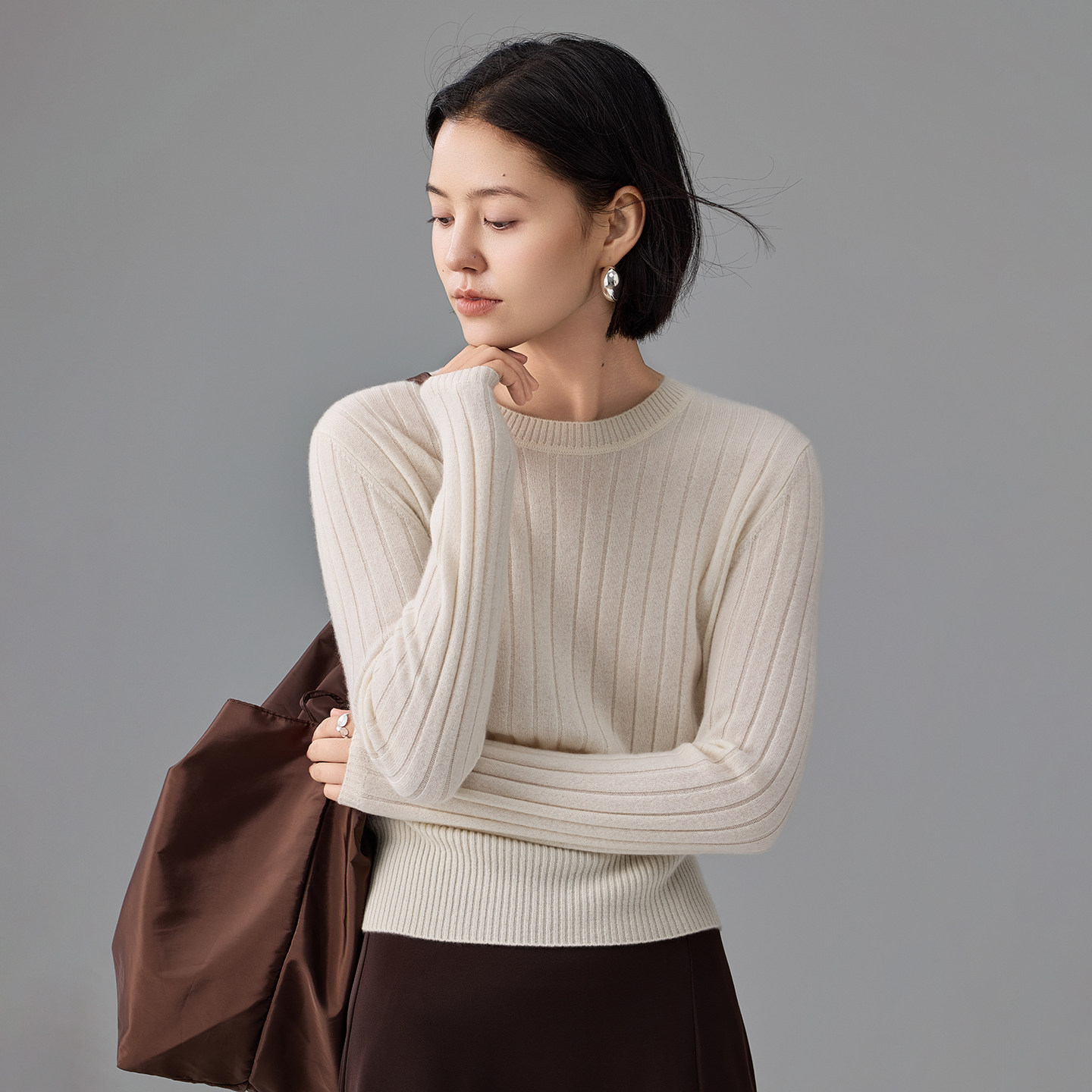 2025秋冬新款毛衣100%纯山羊绒衫女圆领套头高腰修身针织打底衫潮