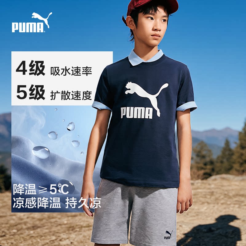 PUMA彪马童装26夏季新款男女童T恤速干短袖短裤圆领儿童运动套装
