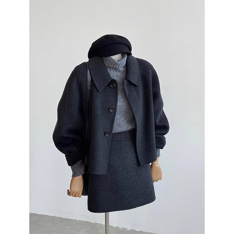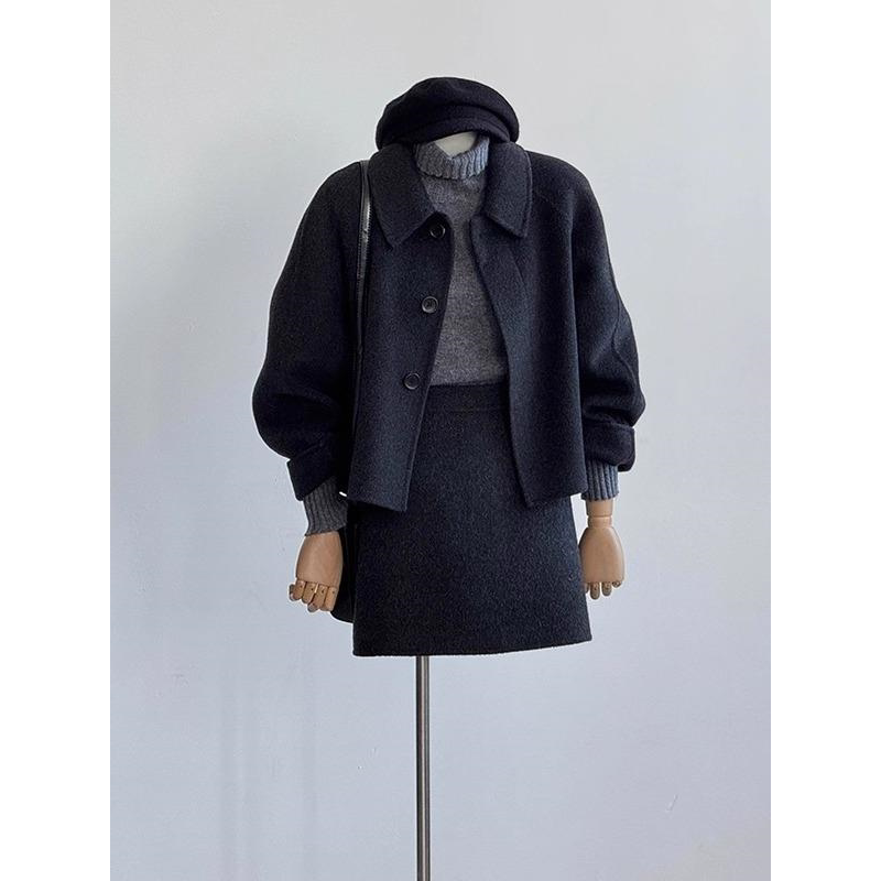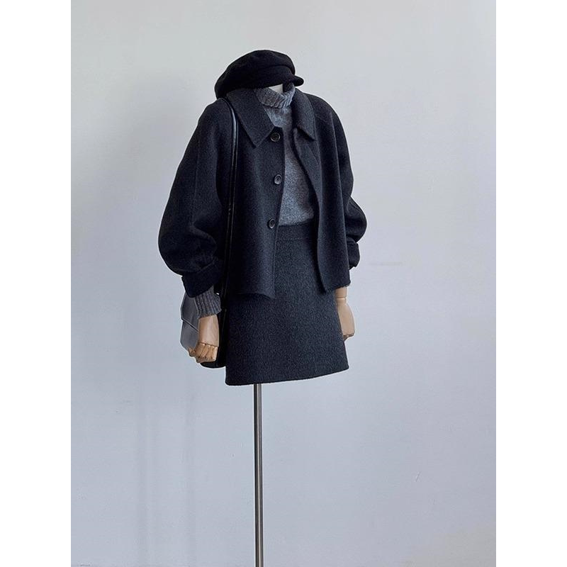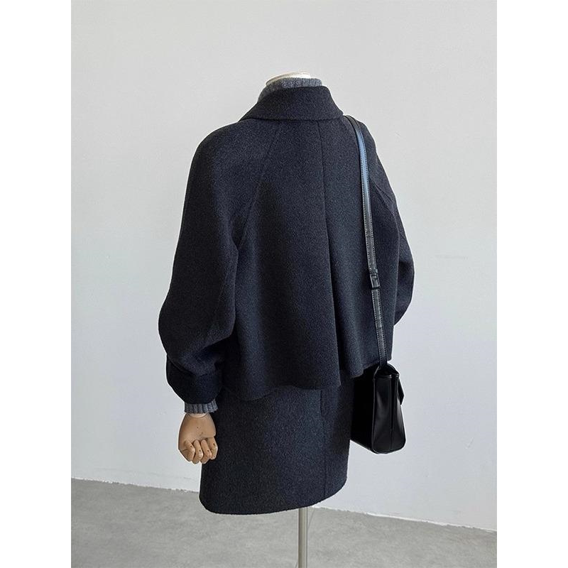 韩国双面羊绒大衣女短款2025秋冬新款高级感斗篷小个子羊毛呢外套