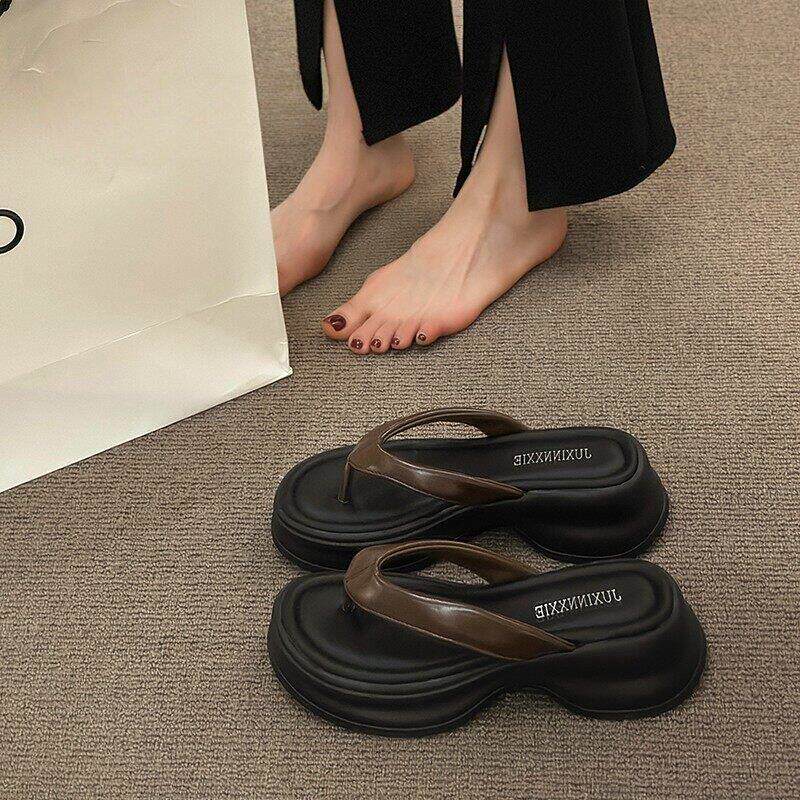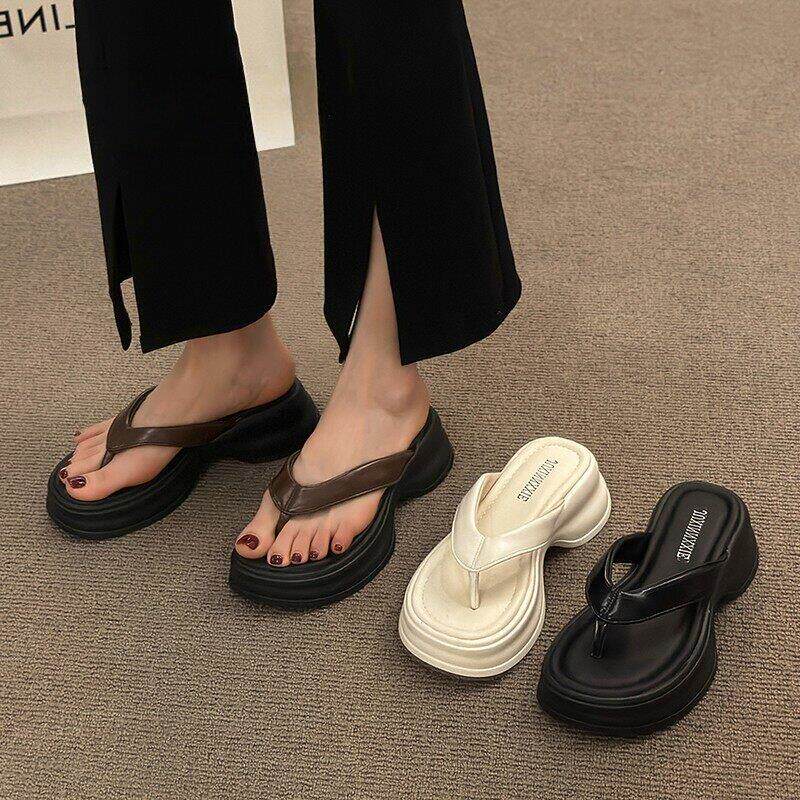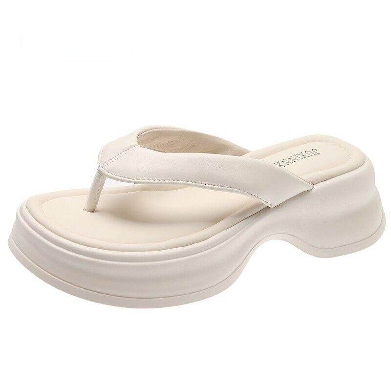 香港真皮厚底夹脚人字拖鞋女夏季外穿2026新款高级感松糕沙滩凉鞋
