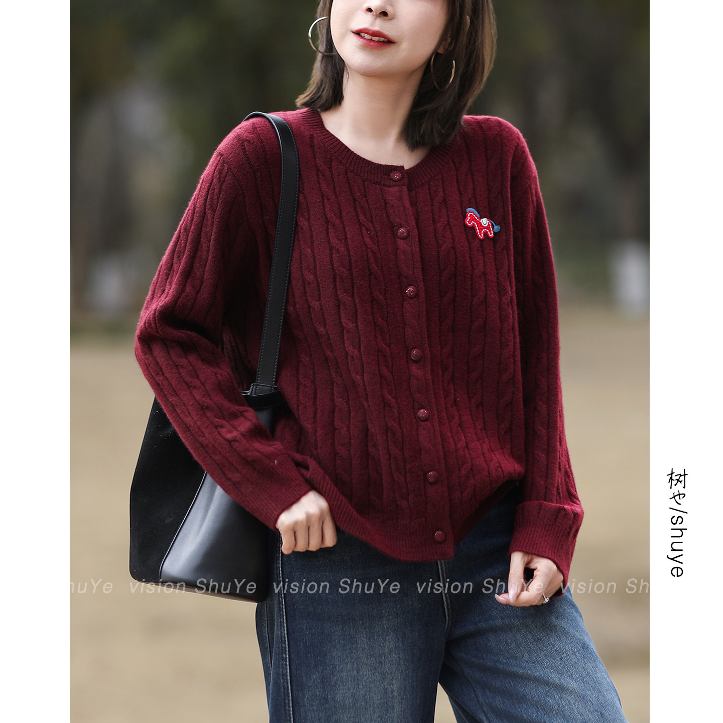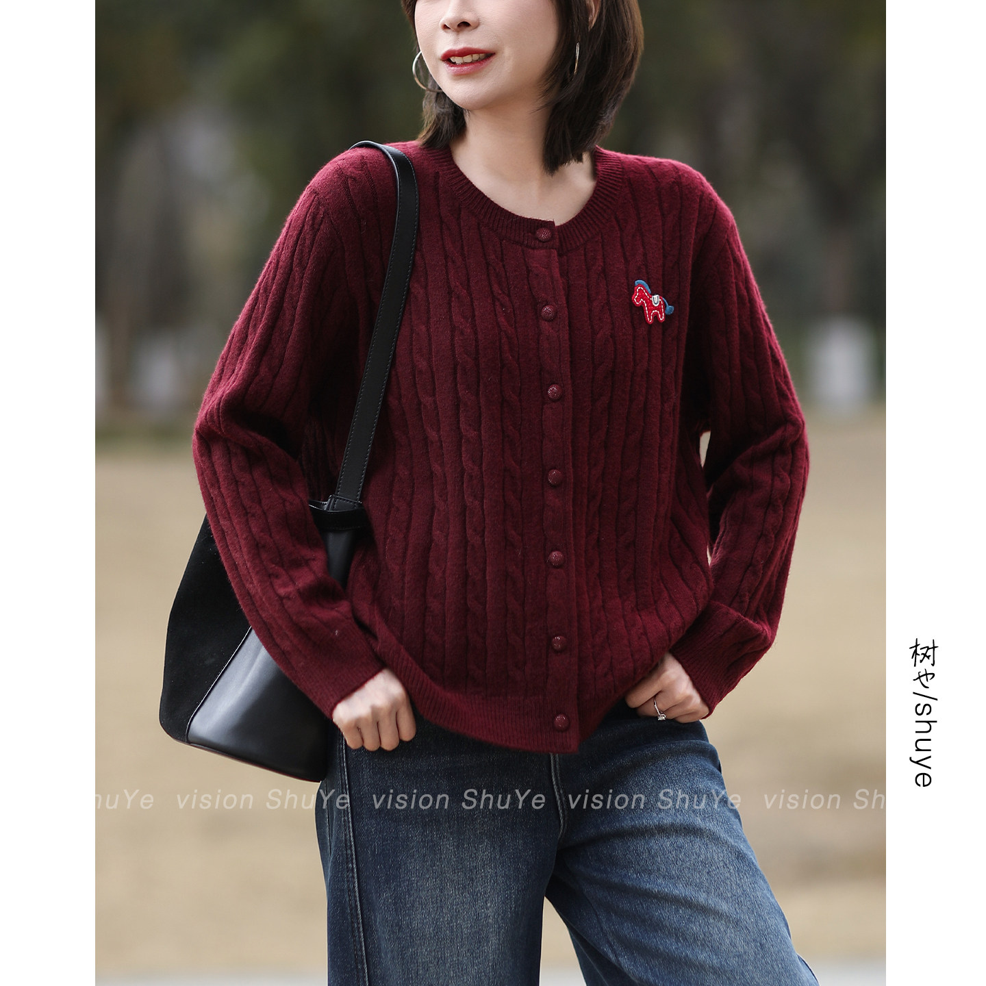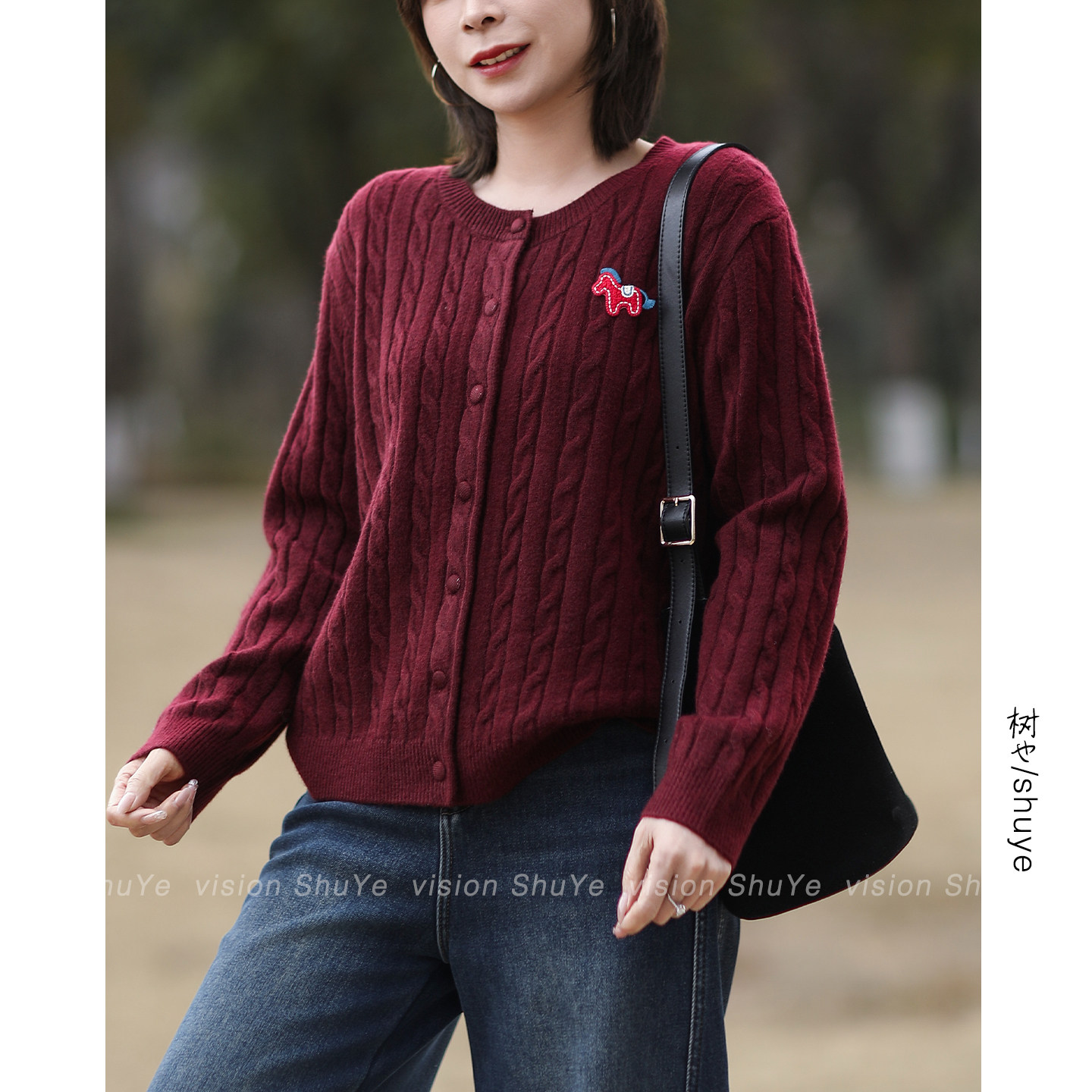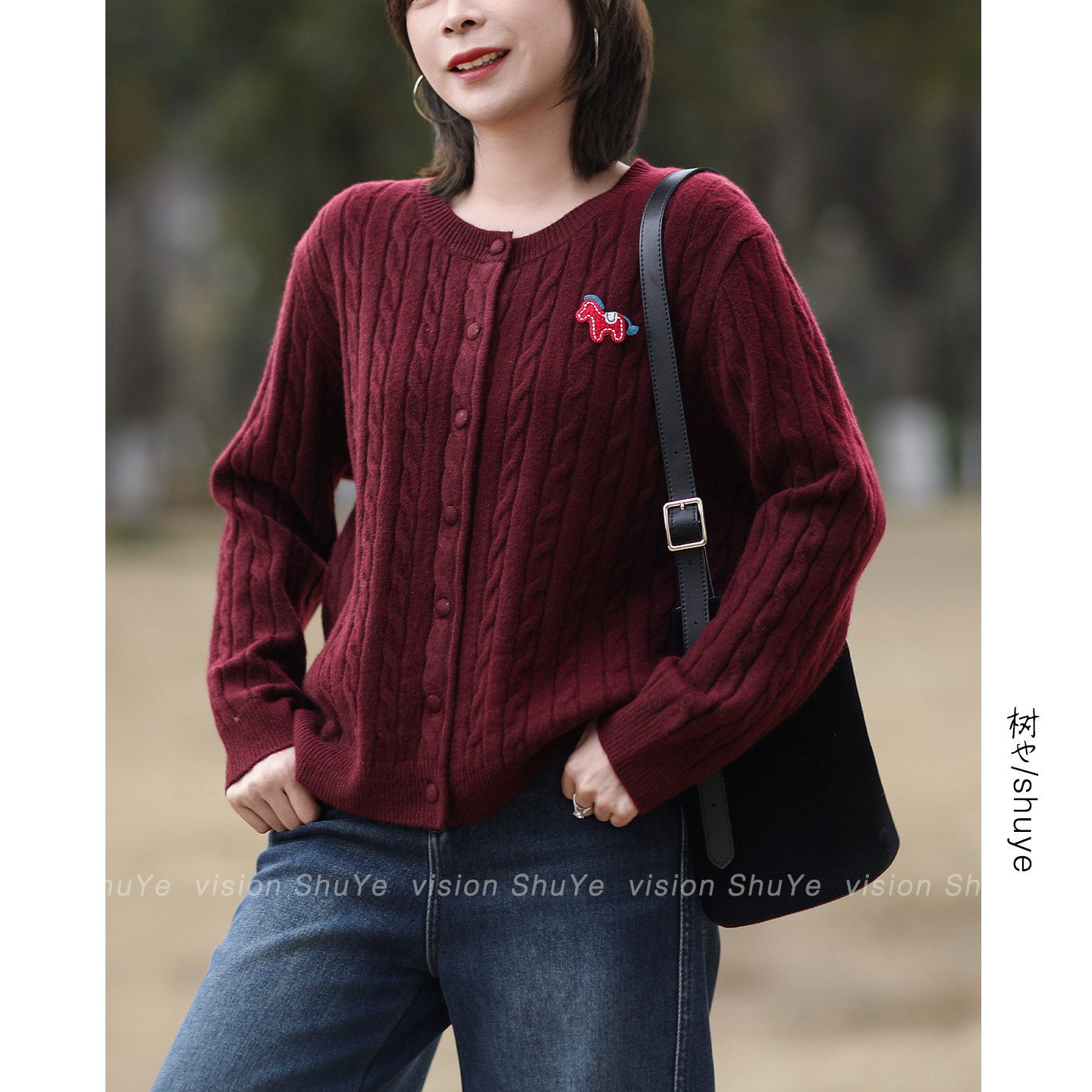 树也 2026早春新款 文艺气质百搭宽松显瘦麻花针织衫毛衣外套女