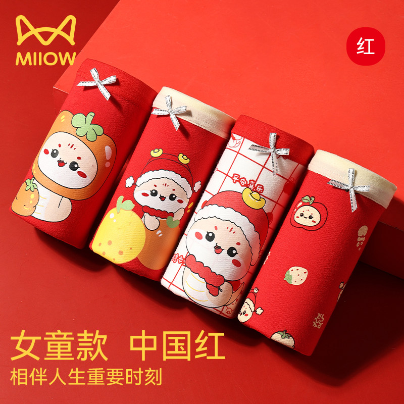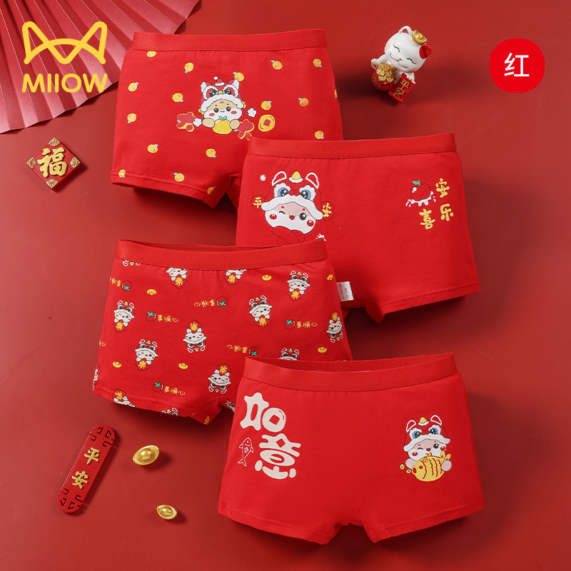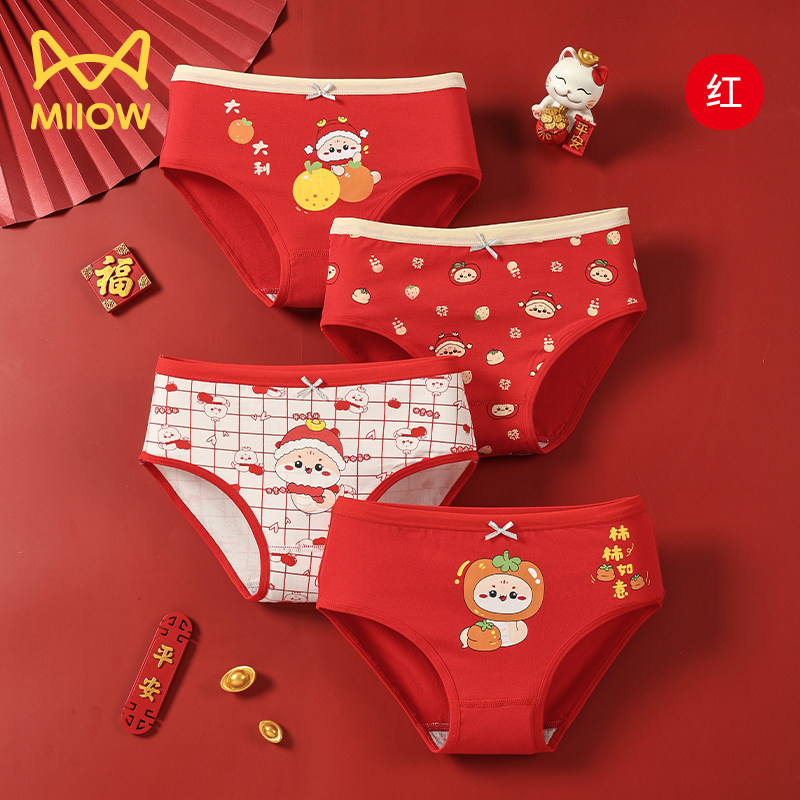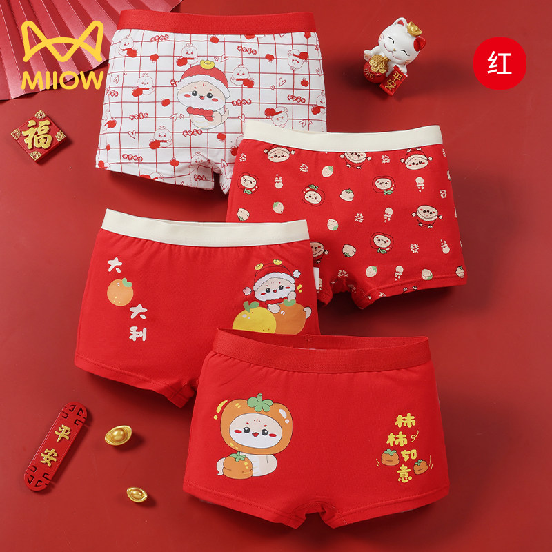 猫人儿童本命年内裤马年12岁女童三角四角平角短裤女孩纯棉大红色
