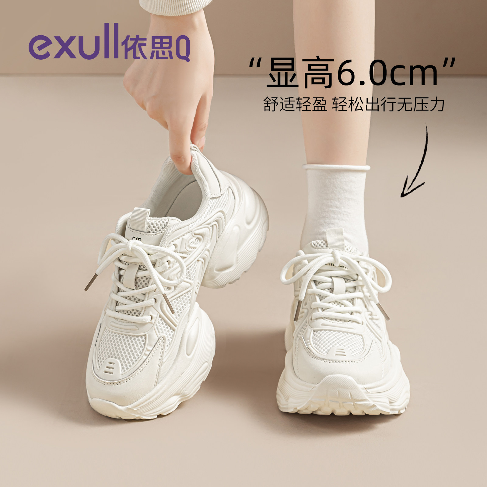 311线报网描述:超火不累脚超轻厚底鞋女百搭透气白色老爹鞋