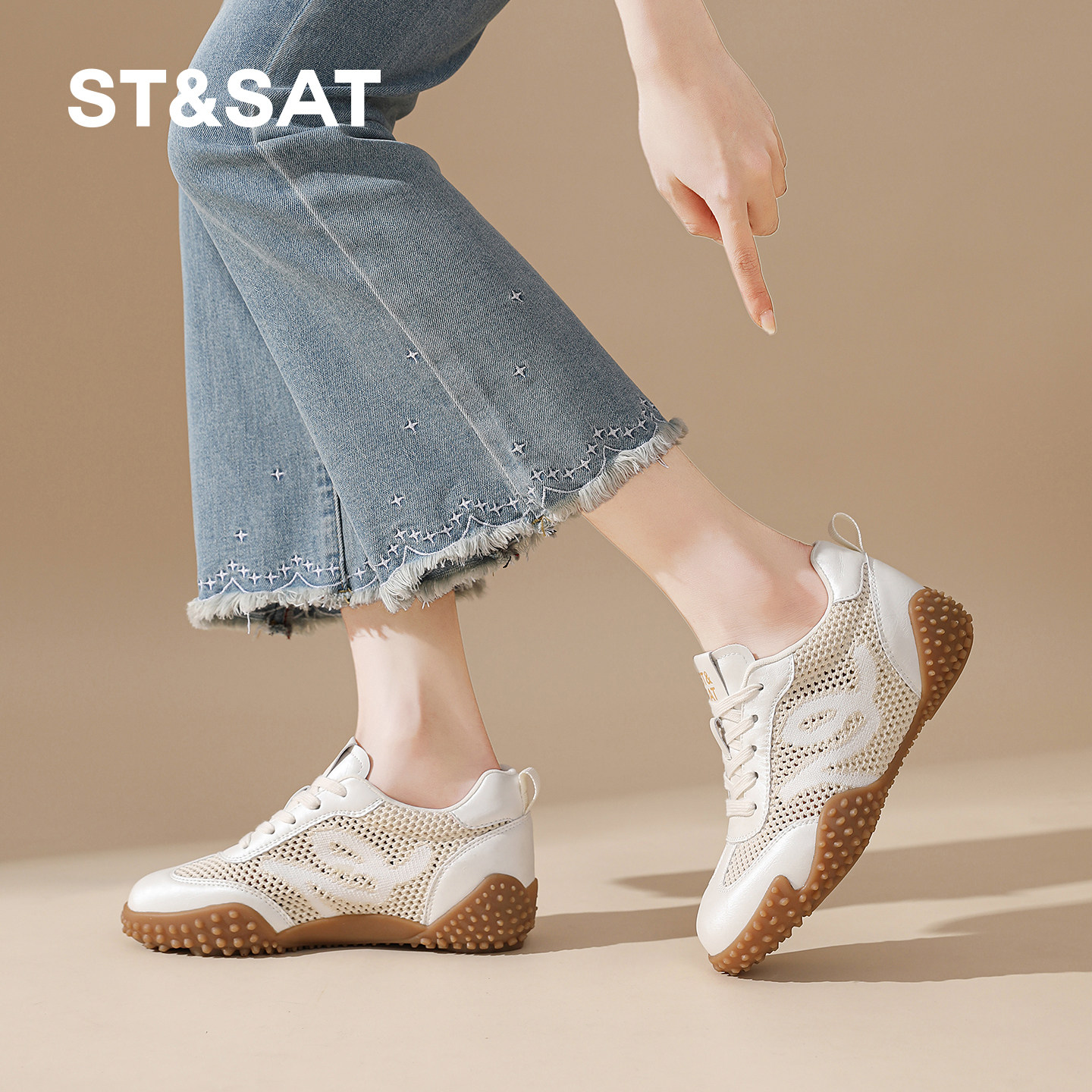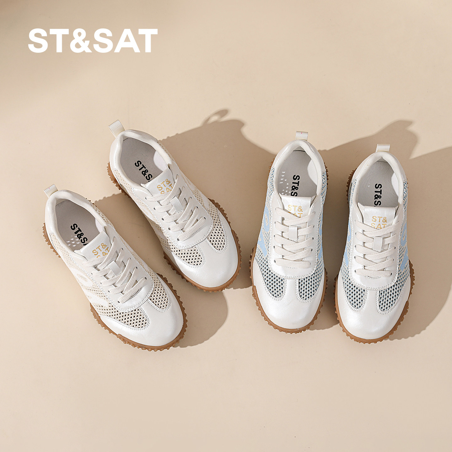 星期六厚底拼色德训鞋女春夏季网面透气女鞋内增高百搭运动休闲鞋