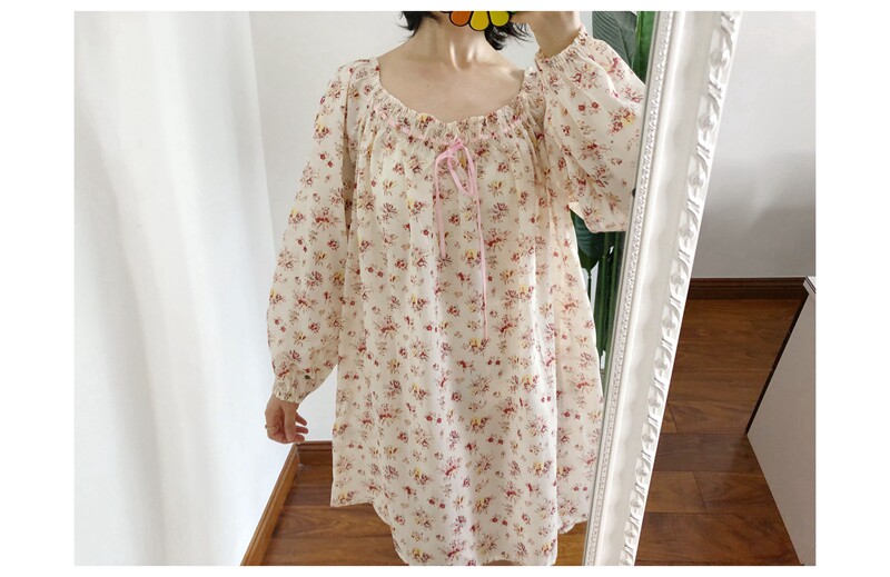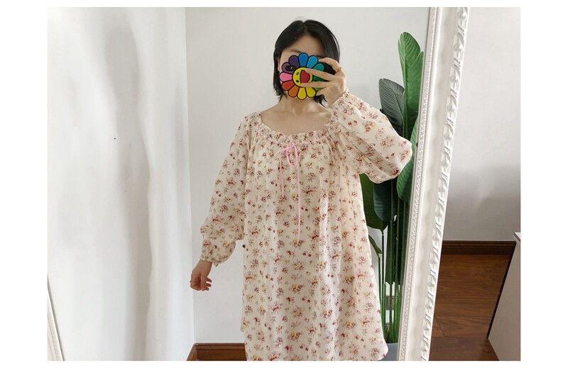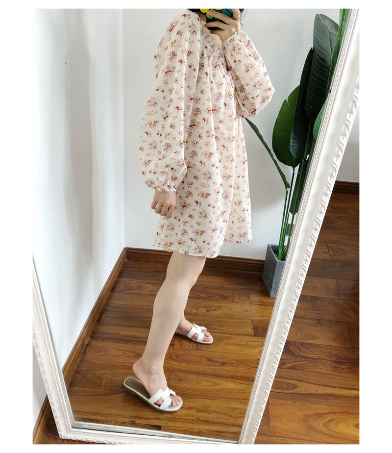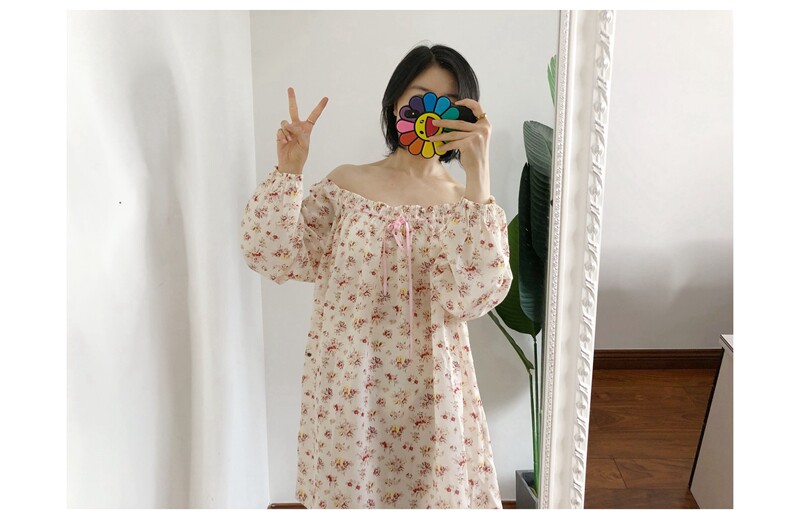 M1 买手do*n复古田园小碎花泡泡袖露肩微透连衣裙长袖短裙outlets