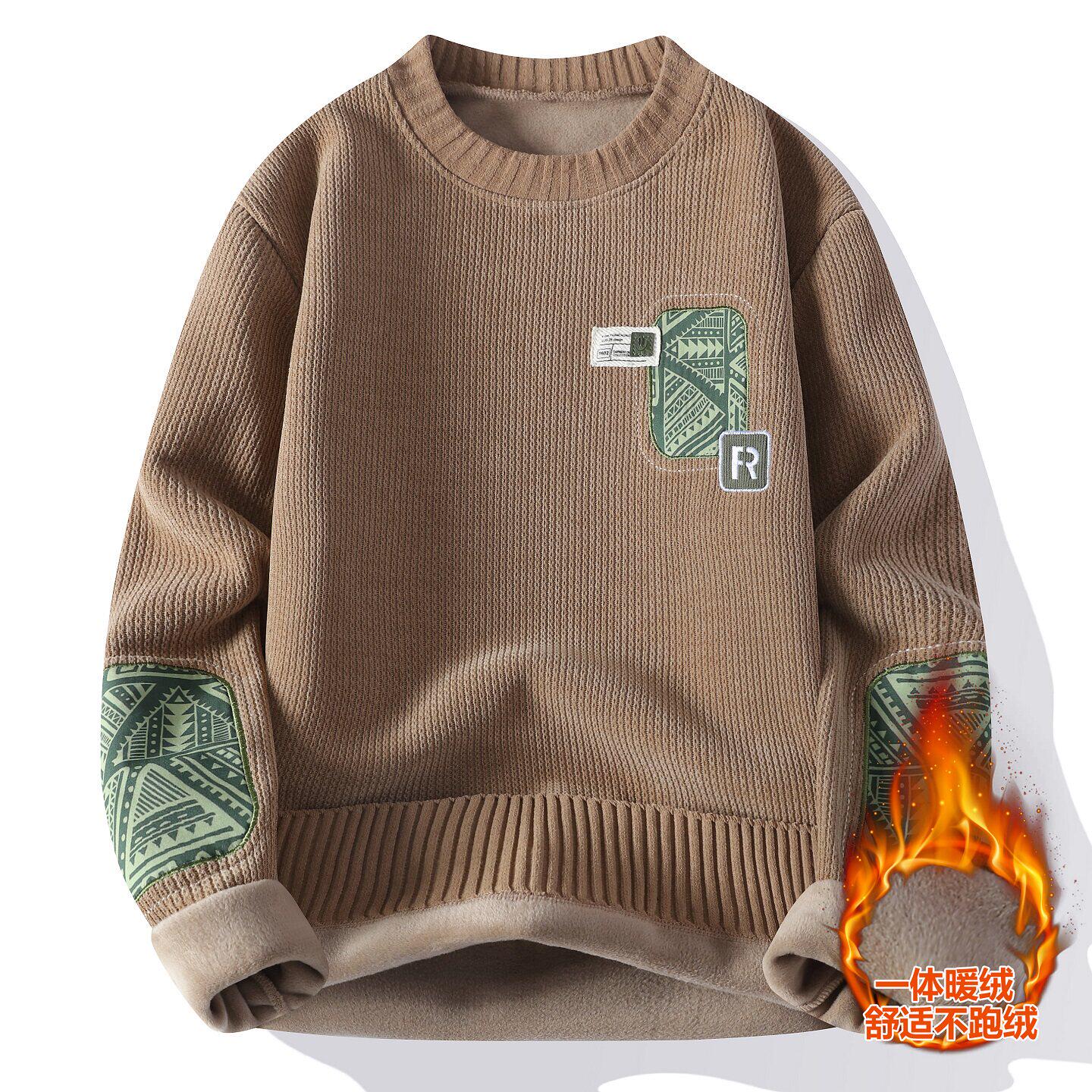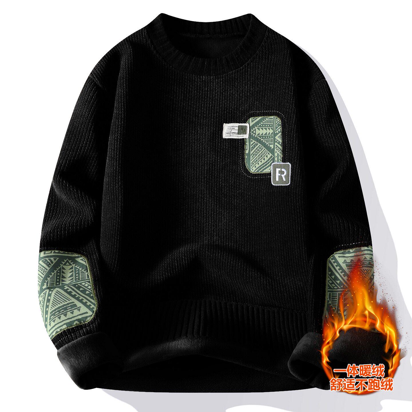 一体绒圆领卫衣男加绒加厚秋冬款青少年初中高中学生大童保暖上衣