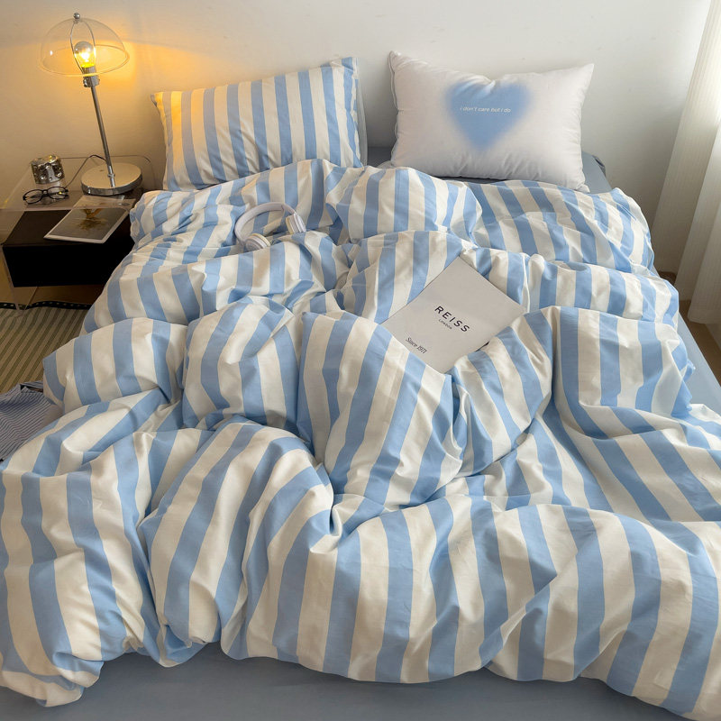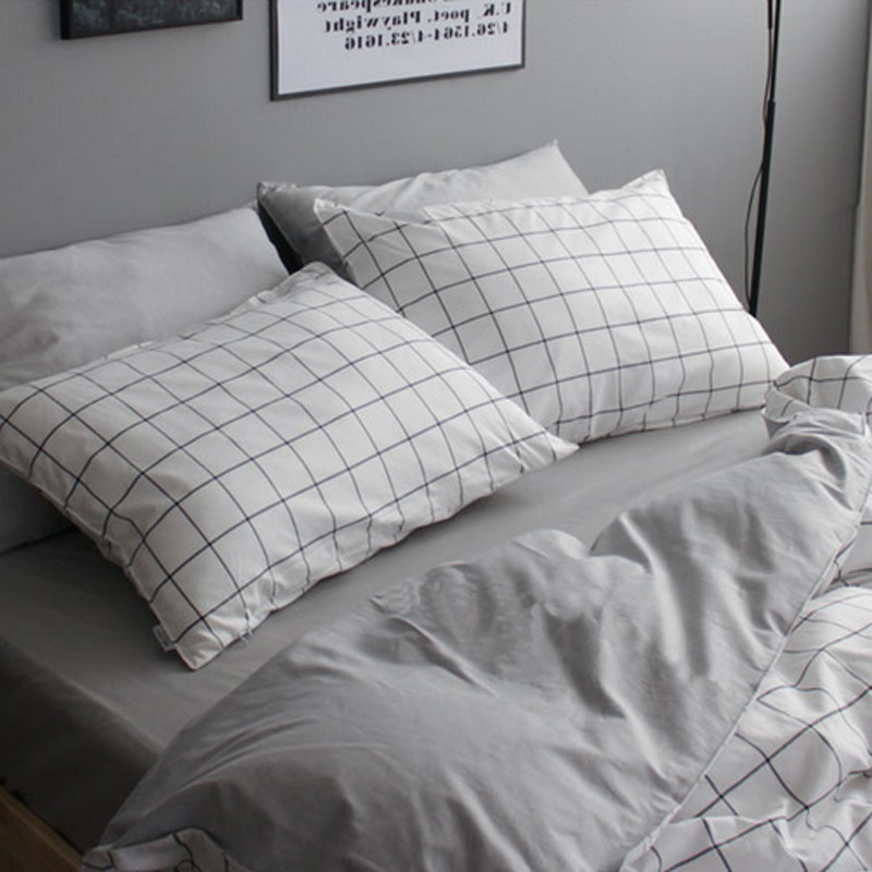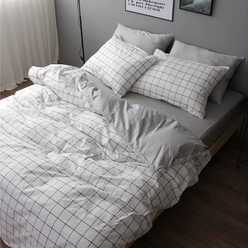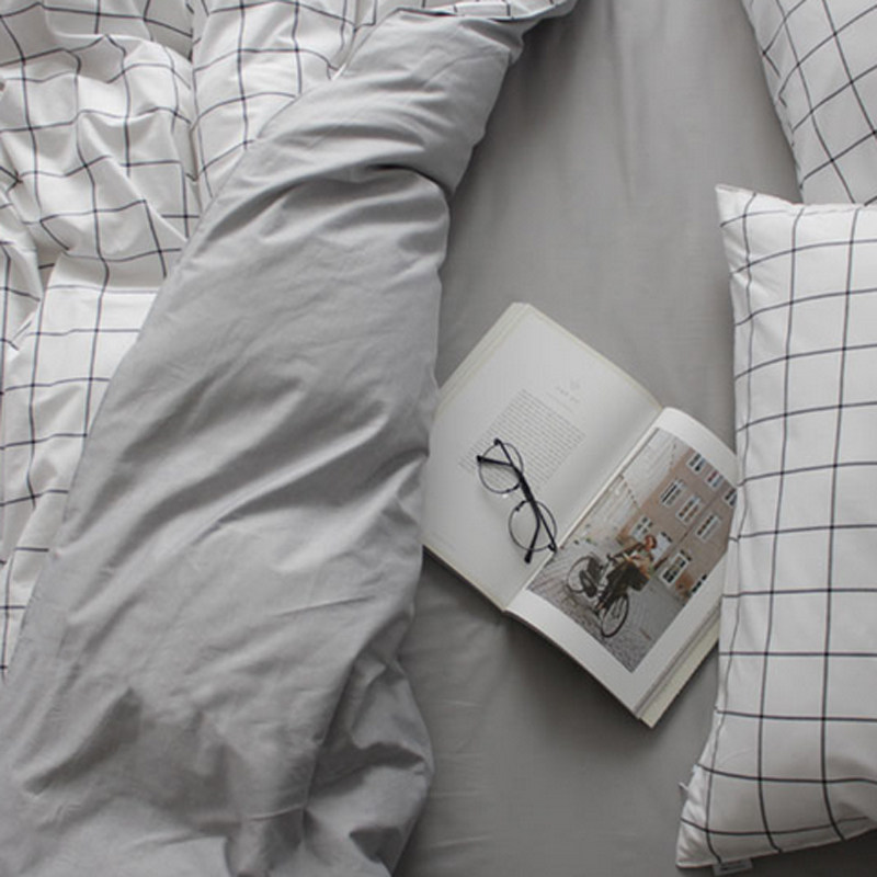 北欧简约风纯棉黑白格子三四件套日式极简风全棉男生床单床上用品