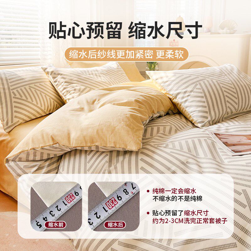 简约风纯棉四件套2m025新款全棉被套被罩床单人男生三件套床上用