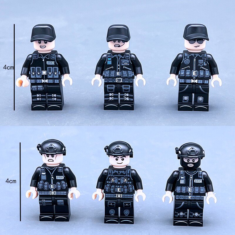 中国积木现代军事人仔特警警察盾牌AK突击步枪配件拼装儿童玩具男