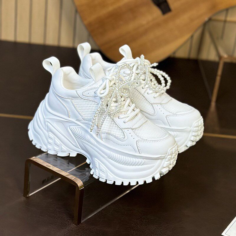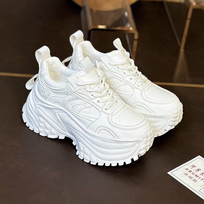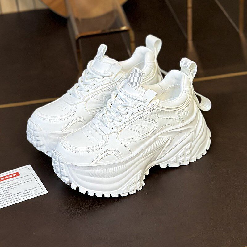 真皮显脚小老爹鞋2025新款春夏透气轻便厚底增高小个子小白鞋女款