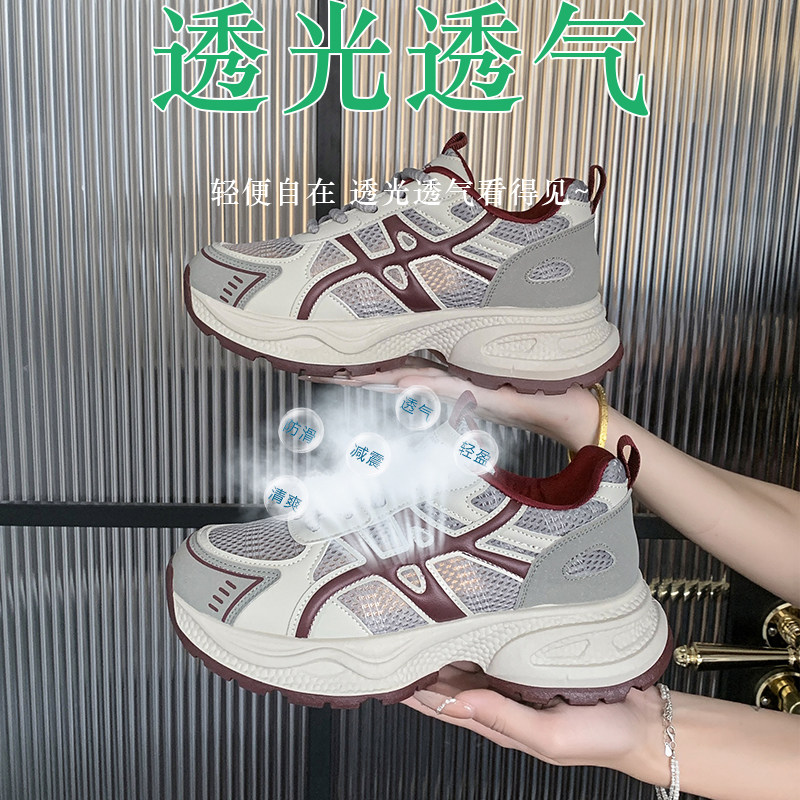 黛西法罗网面老爹鞋女士2026夏季厚底百搭轻便增高透气薄款休闲鞋