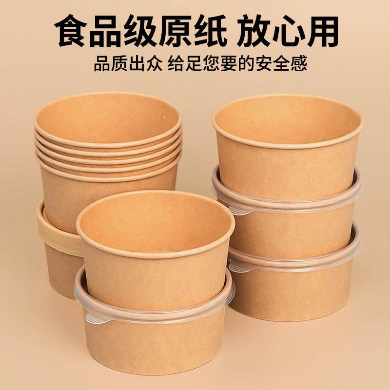 牛皮纸打包盒一次性纸碗饭碗野餐盒沙拉碗纸饭盒外送快餐盒商用