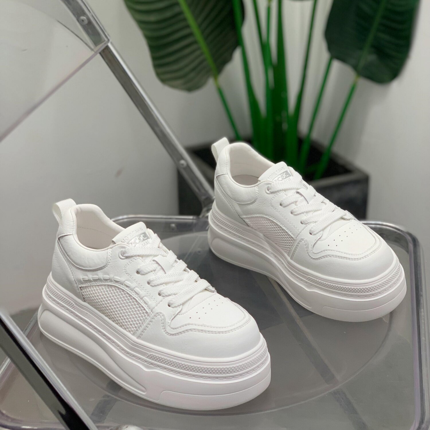休闲风厚底小白鞋女2026年夏季网面透气增高松糕鞋小个子百搭板鞋