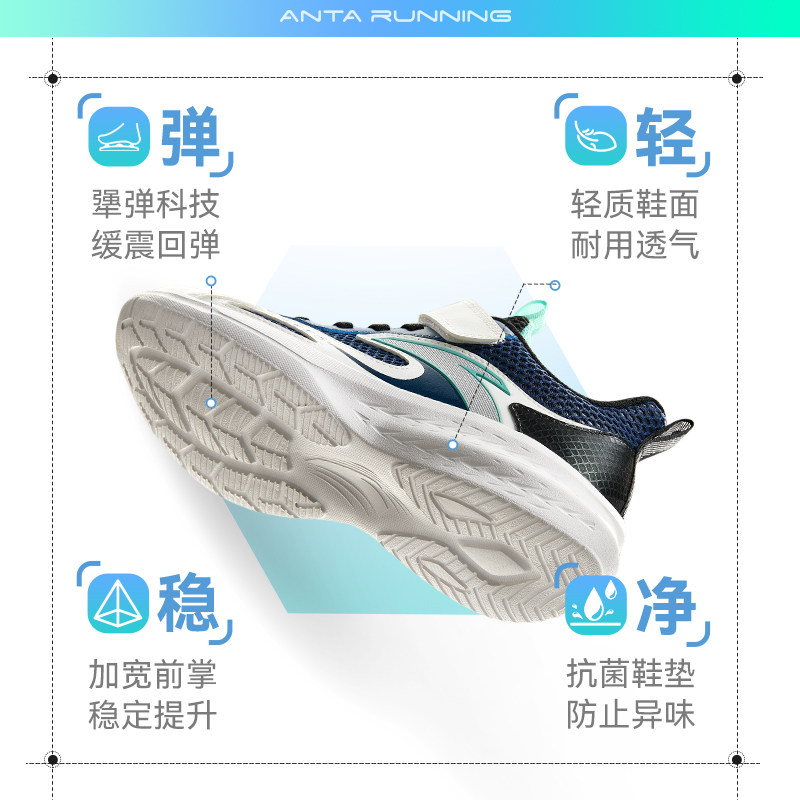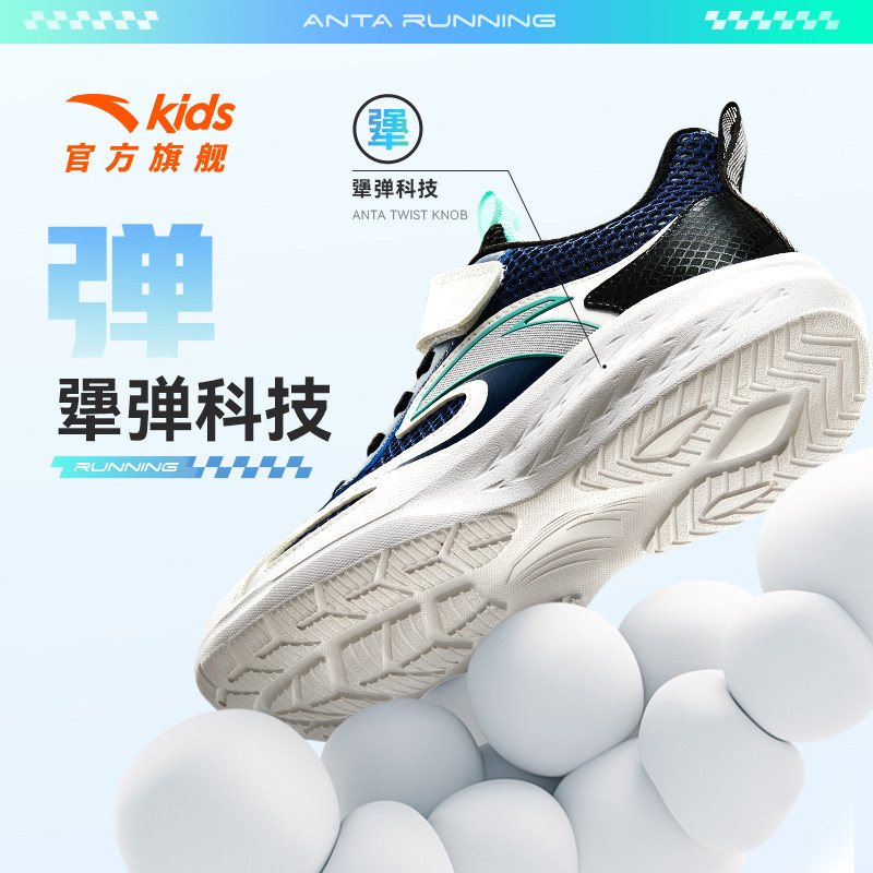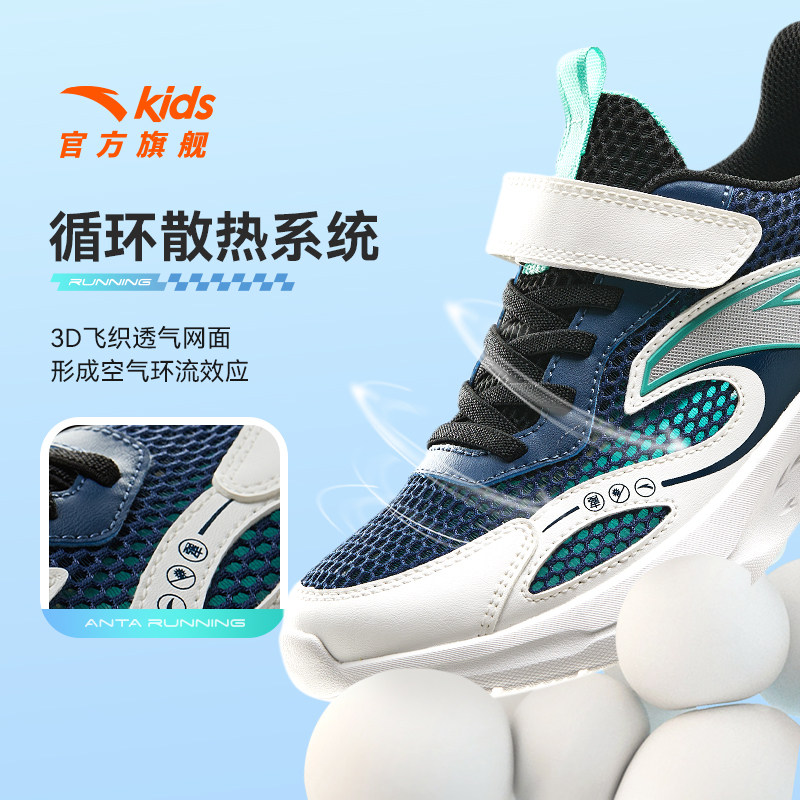 安踏儿童运动鞋男童跑鞋2025夏季防滑耐磨轻便抗菌儿童跑鞋