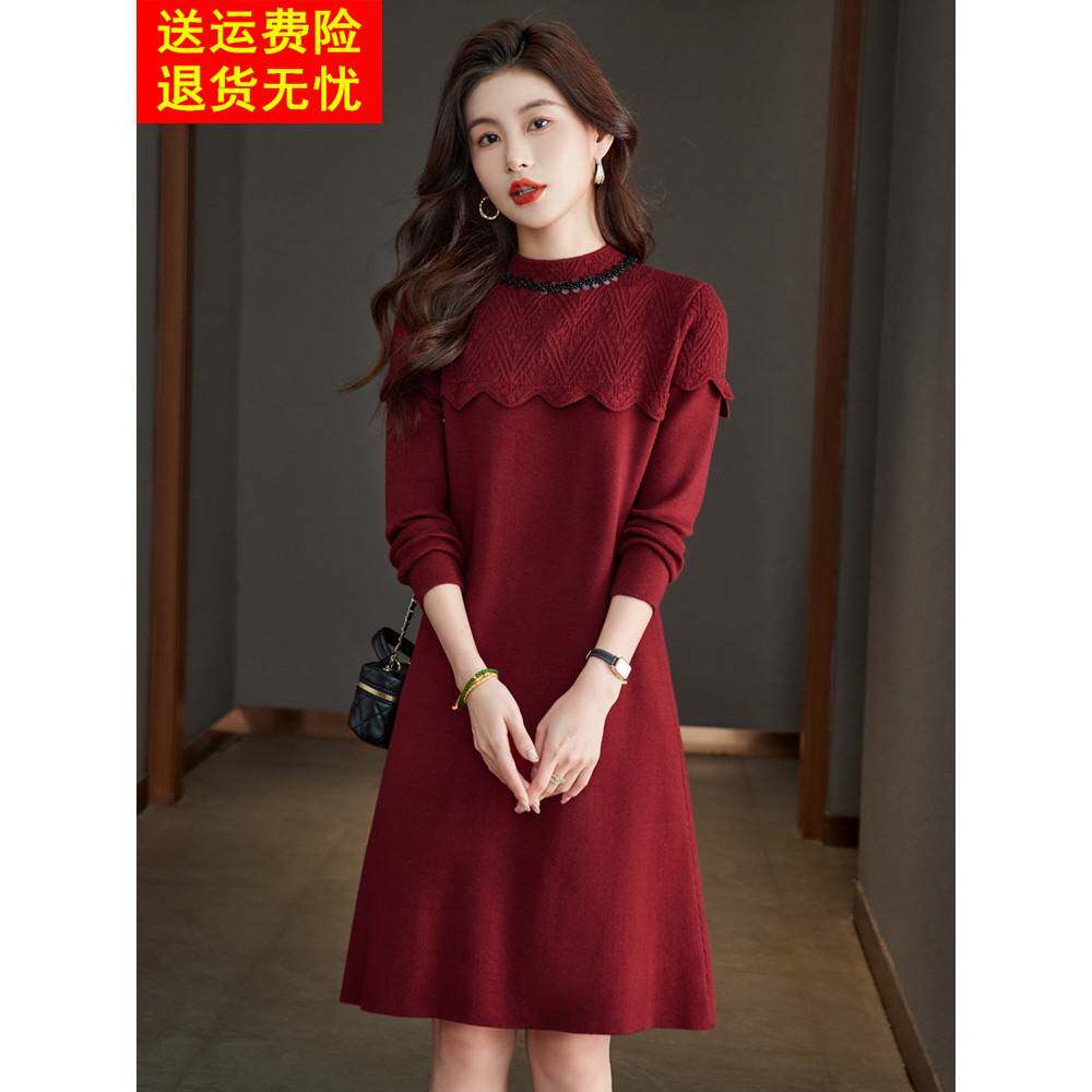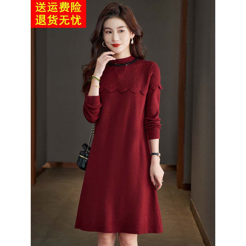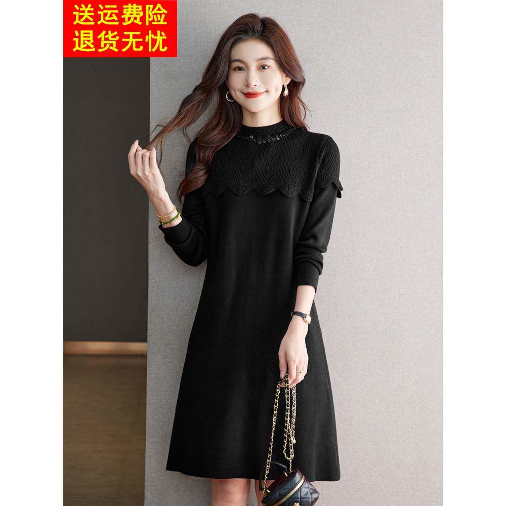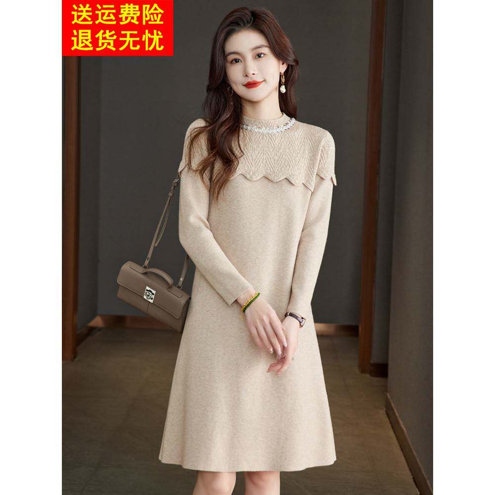 配大衣的内搭羊毛连衣裙女中长款秋冬新款宽松打底衫洋气毛衣裙子