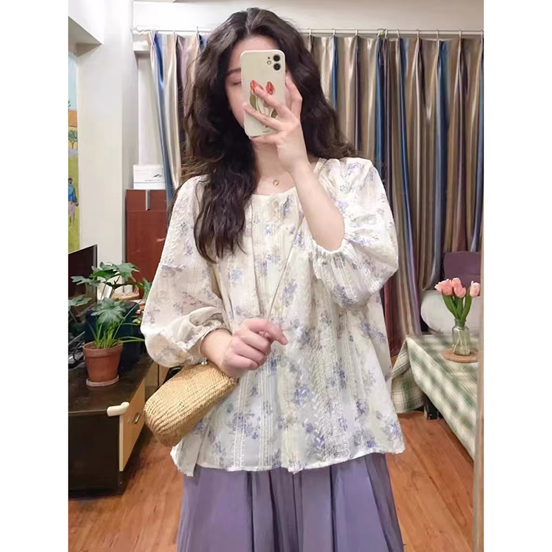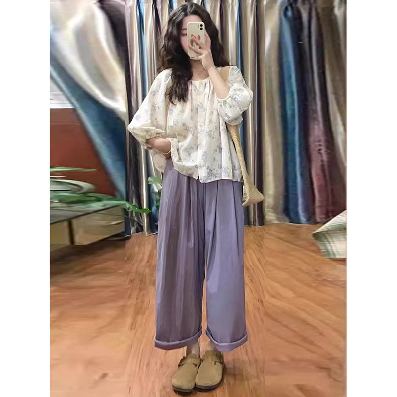 孕妇套装夏季2026新款韩版甜美减龄薄款长袖刺绣上衣裤子两件套女
