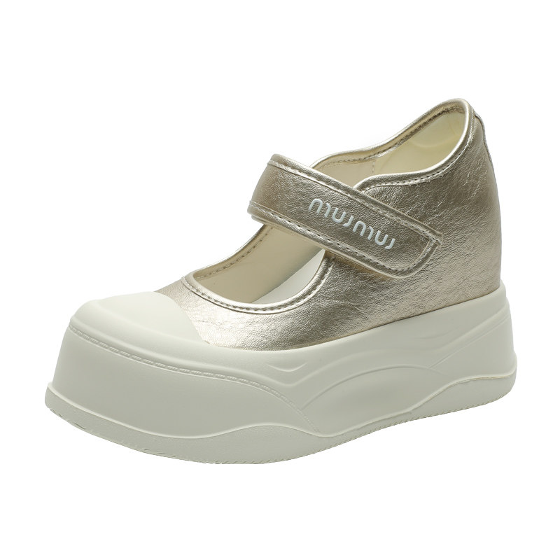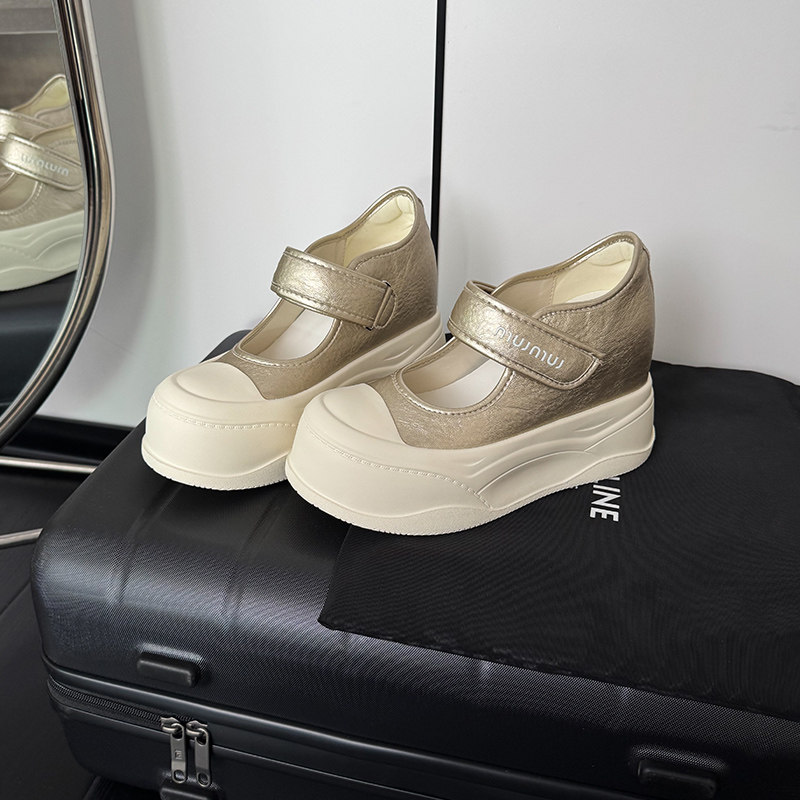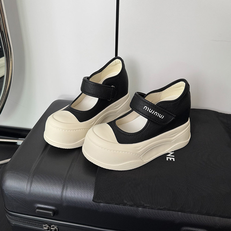 10CM内增高厚底玛丽珍鞋女2026新款小个子休闲增高板鞋真皮松糕鞋