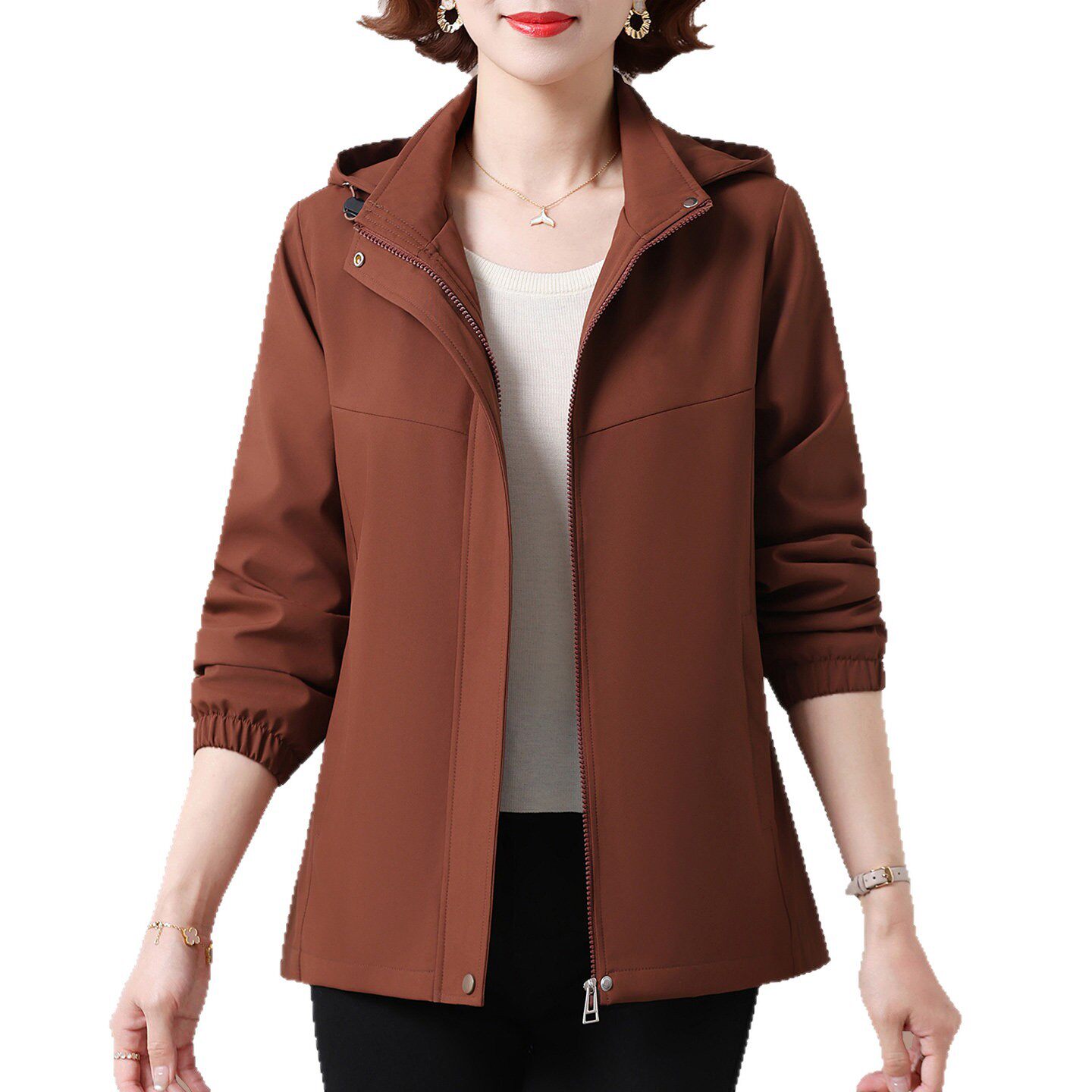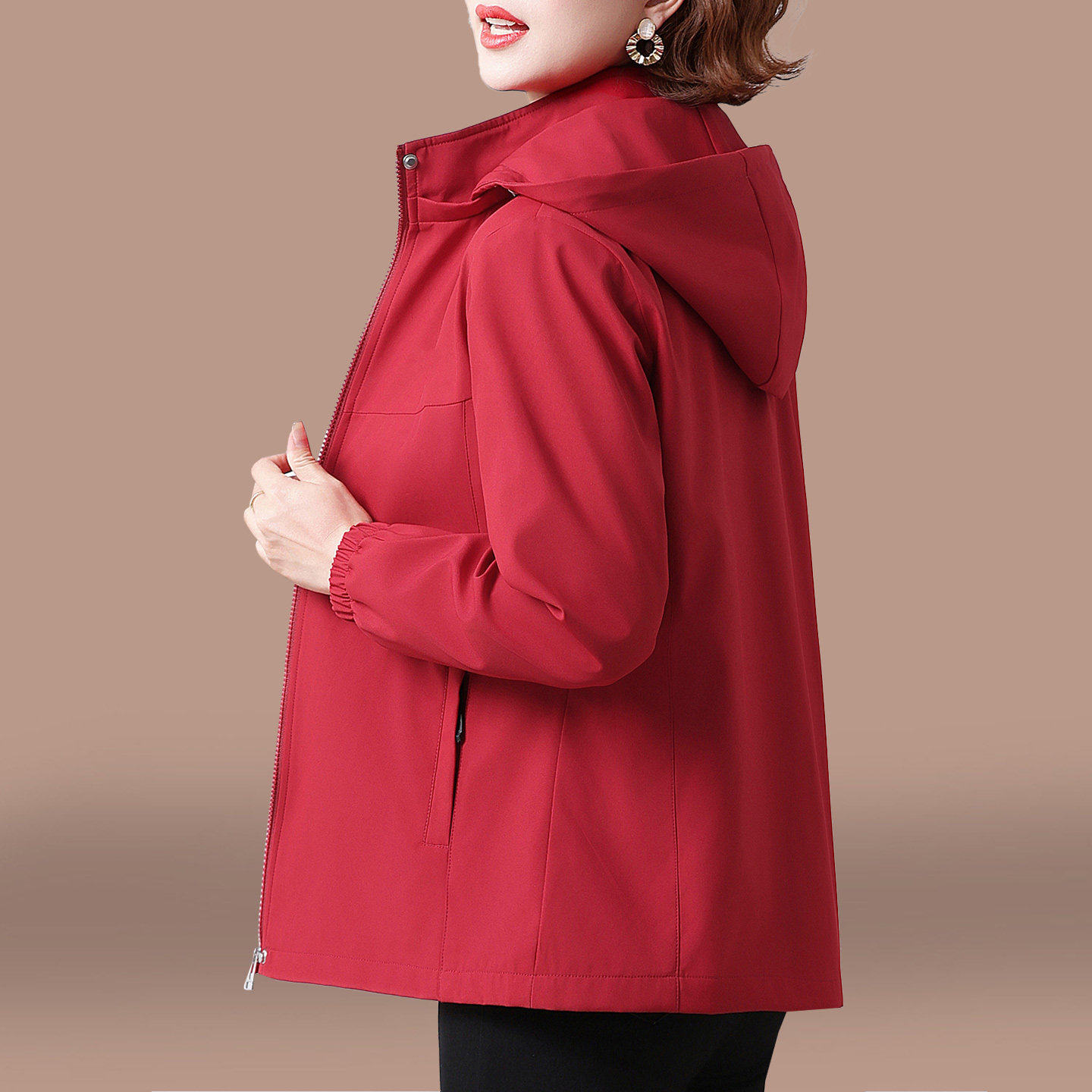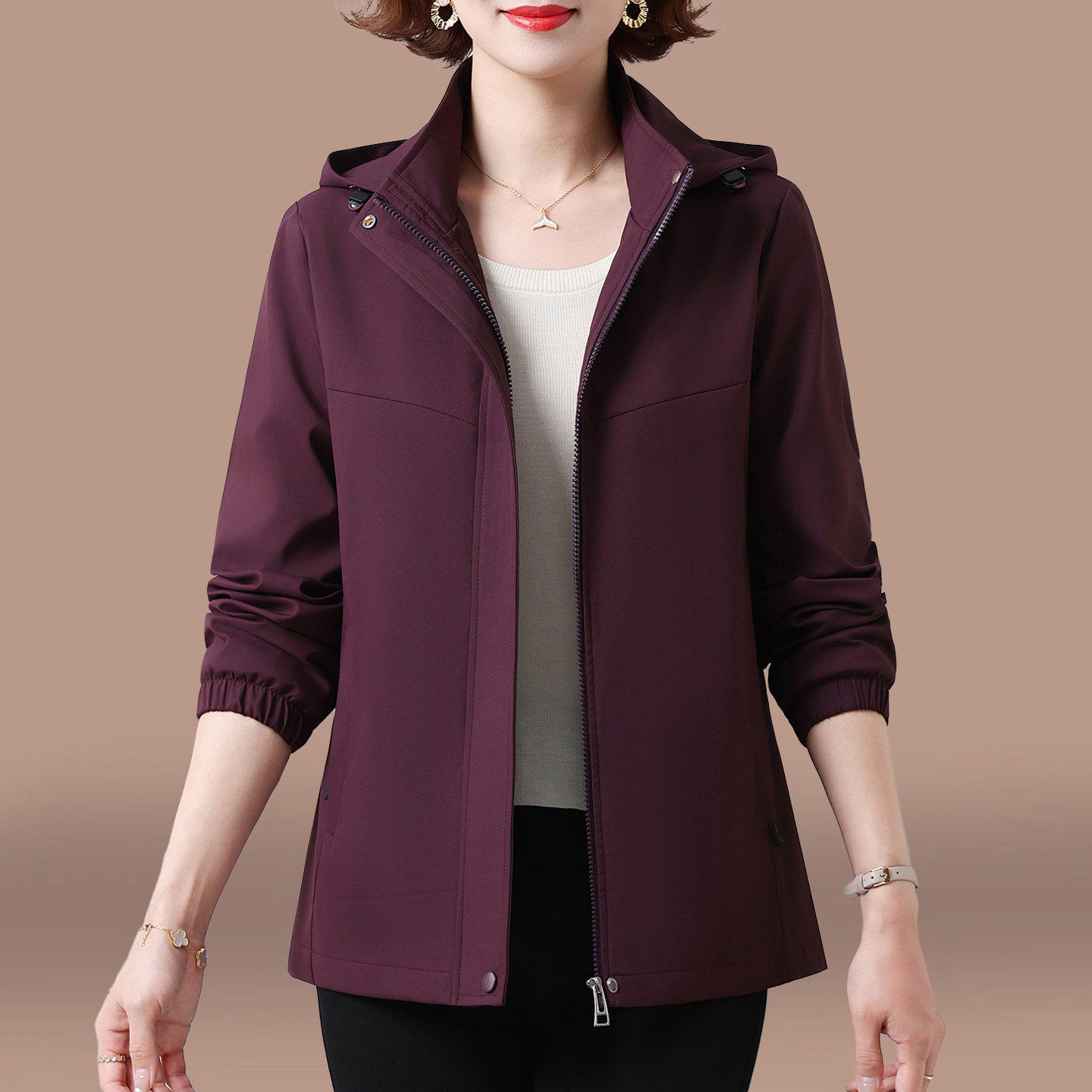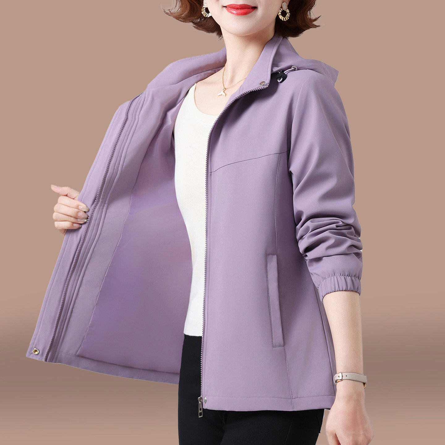 短款外套女款春秋2026新款中年妈妈春季薄款时尚宽松连帽女士风衣