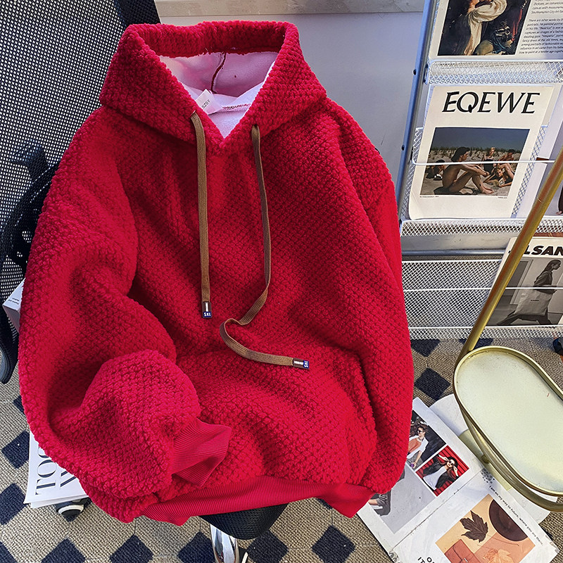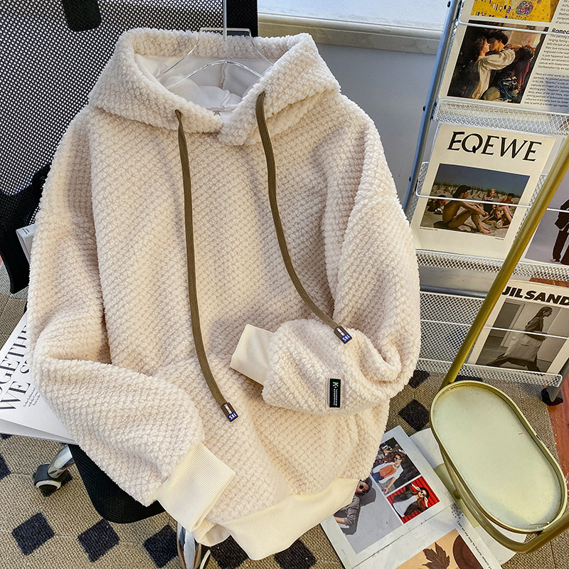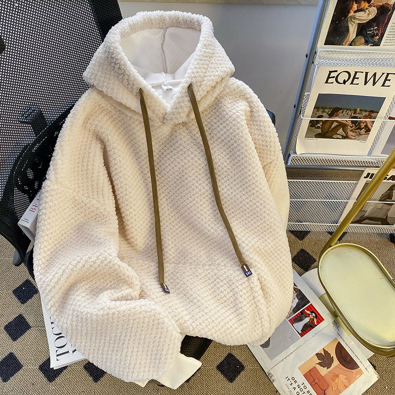 高级感超好看菠萝格毛绒绒连帽卫衣女秋冬季加绒加厚爆款上衣外套