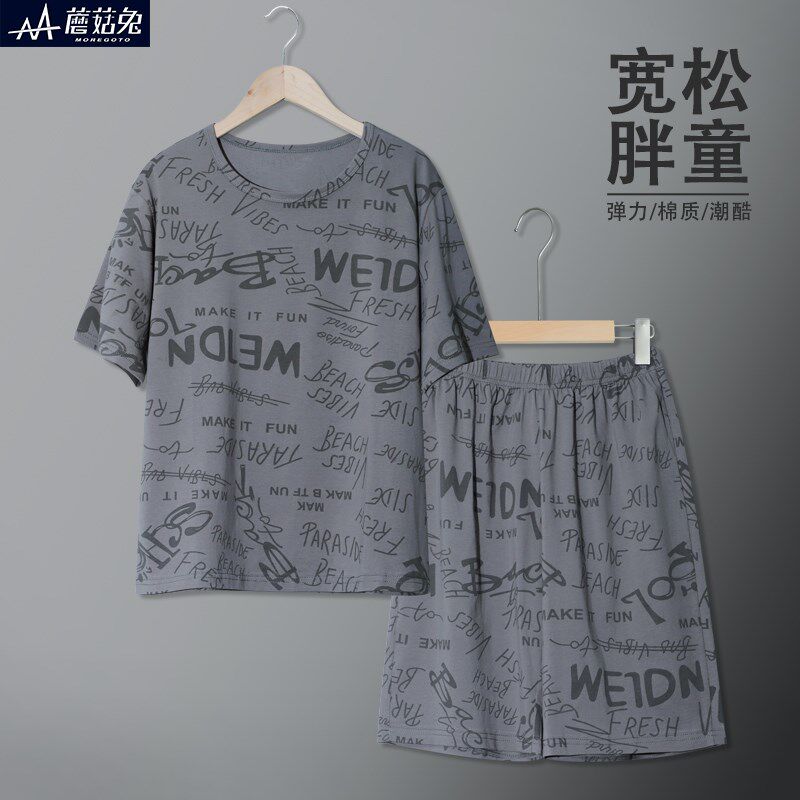 胖童睡衣男童夏季薄款家居服套装青少年短袖睡衣男孩宽松加肥加大