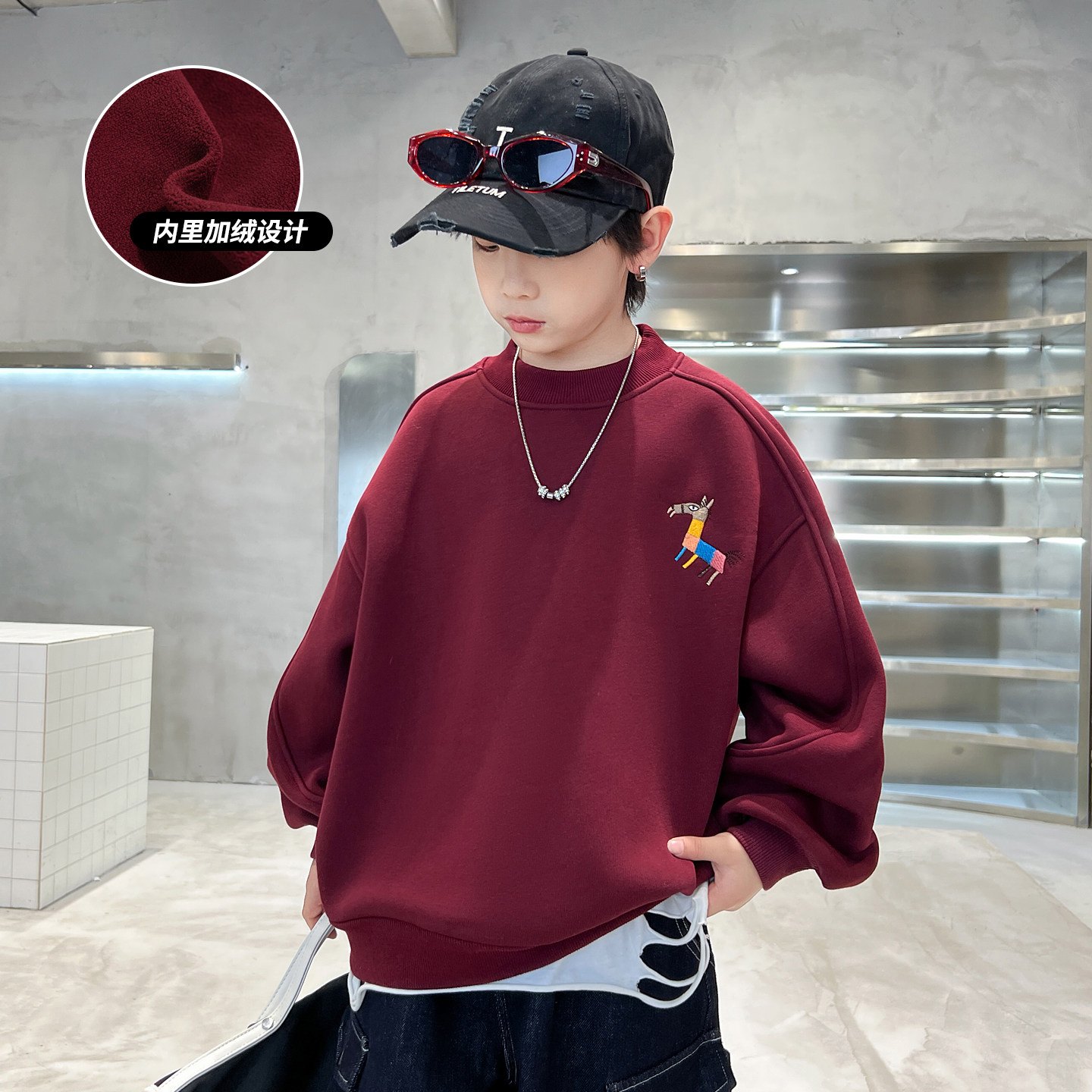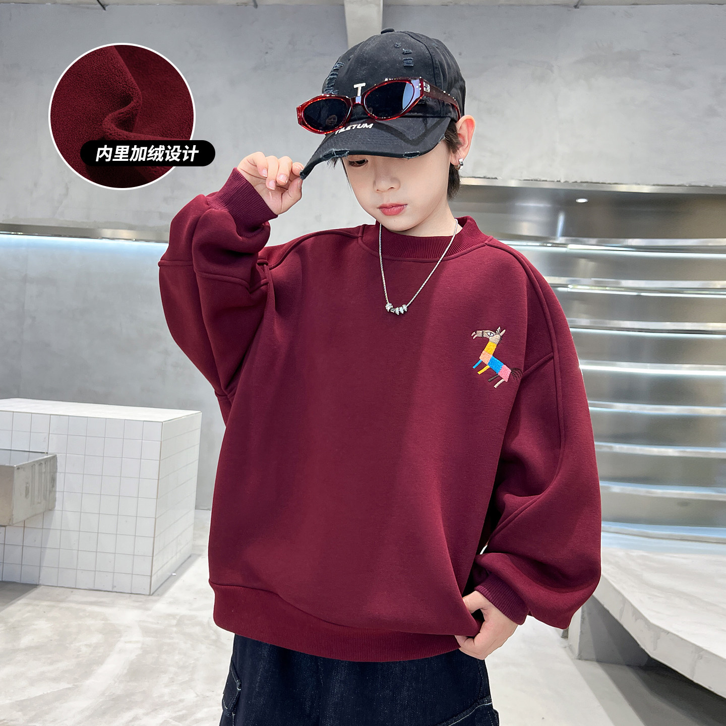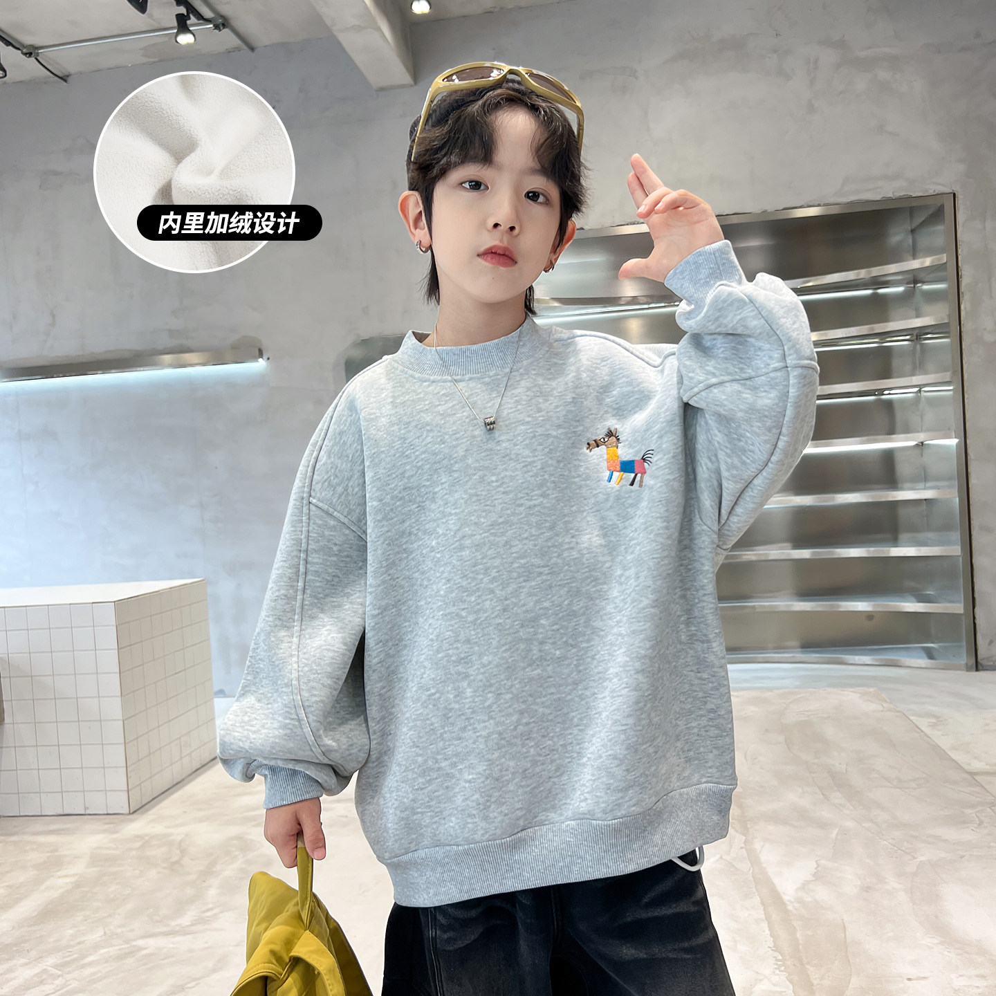 男童卫衣春装大童小马痞帅风炸街上衣2026新款秋冬加绒儿童打底衫