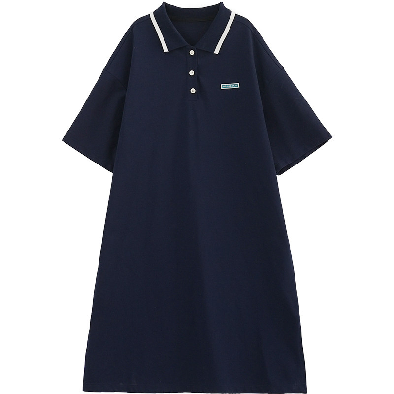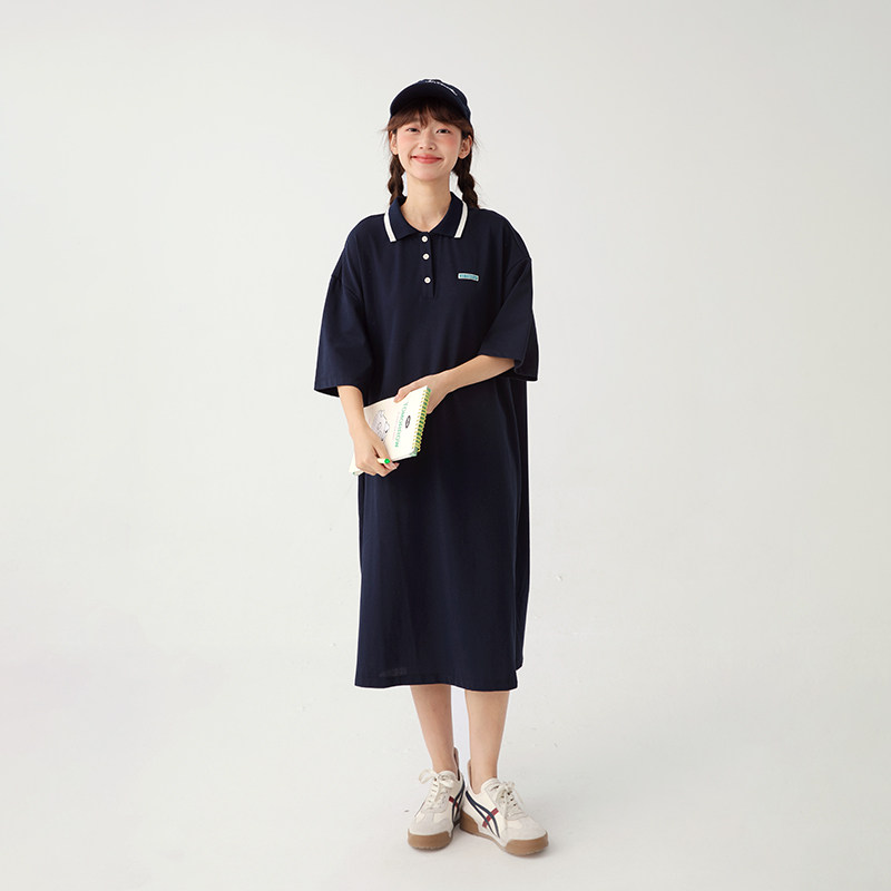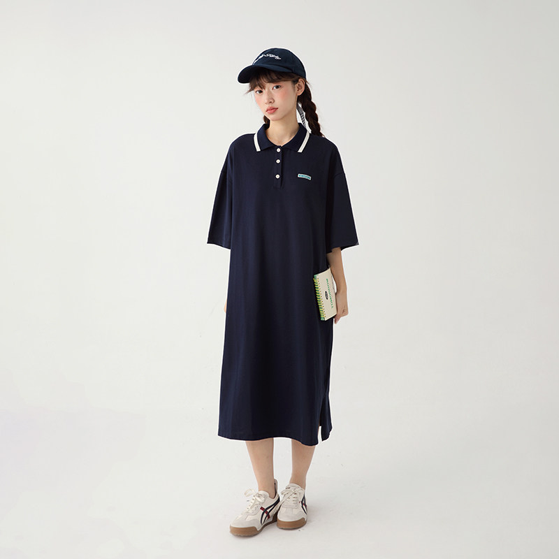 诺诺公主S1N 初中生裙子女夏季女童中长款polo领连衣裙中大童裙子