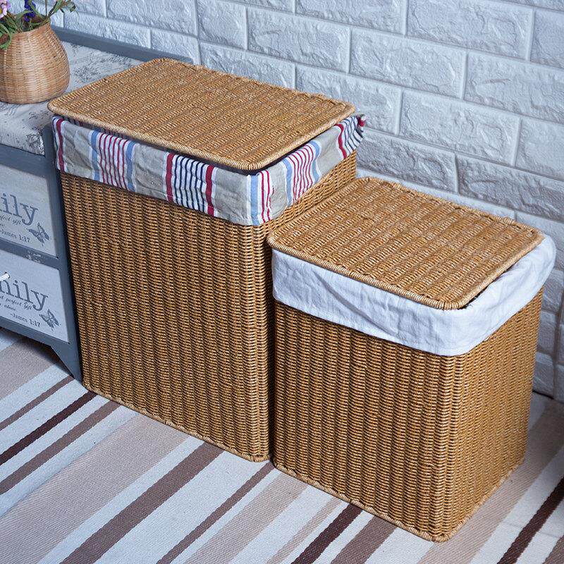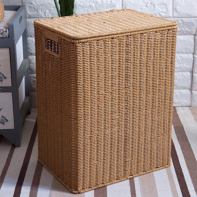 脏衣桶彷藤编织大号储物收纳箱带盖子方形脏衣服收纳筐家用洗衣篮