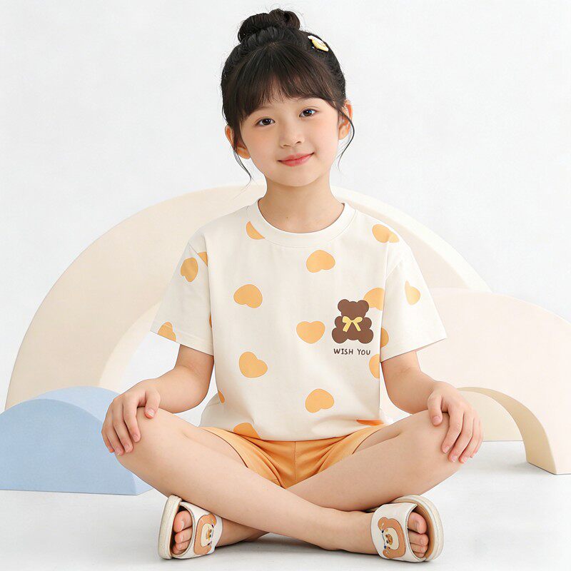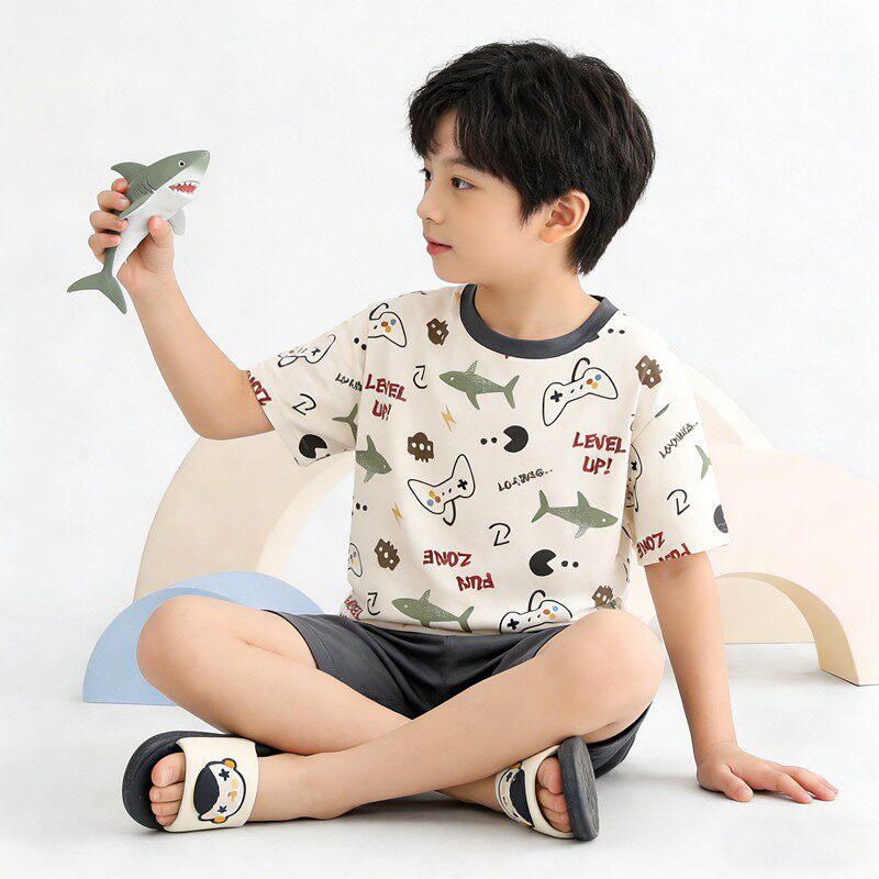 儿童纯棉a类运动两件套短袖短裤套装夏男孩居家睡衣外穿女童凉感
