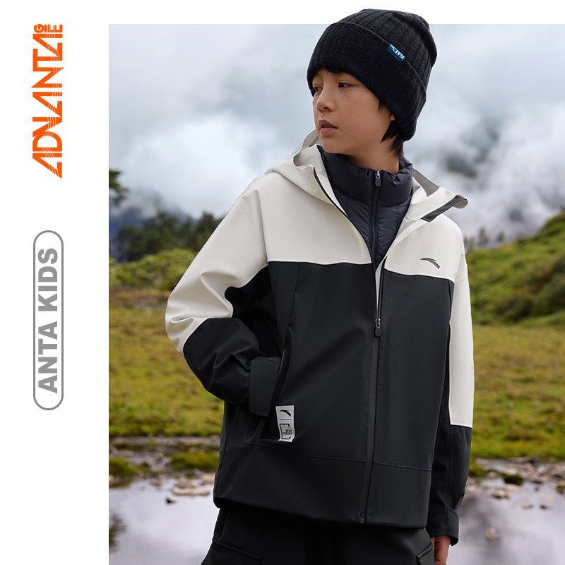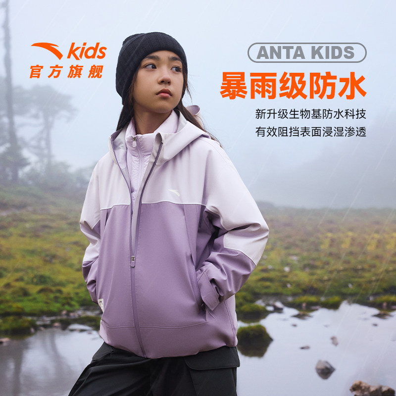 安踏儿童女童冲锋衣三合一羽绒两件套秋冬新款保暖防风衣防水户外