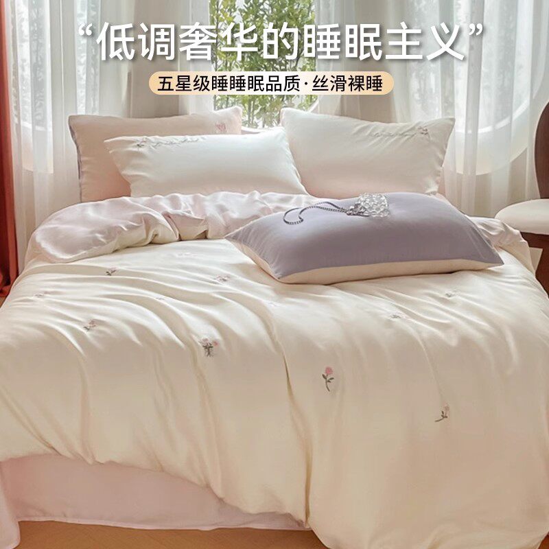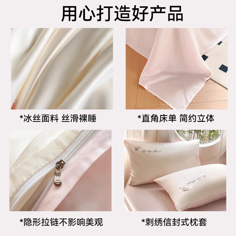 夏季夏季冰丝四件套裸睡超柔亲肤被套高级感卧室床单被套床上用品