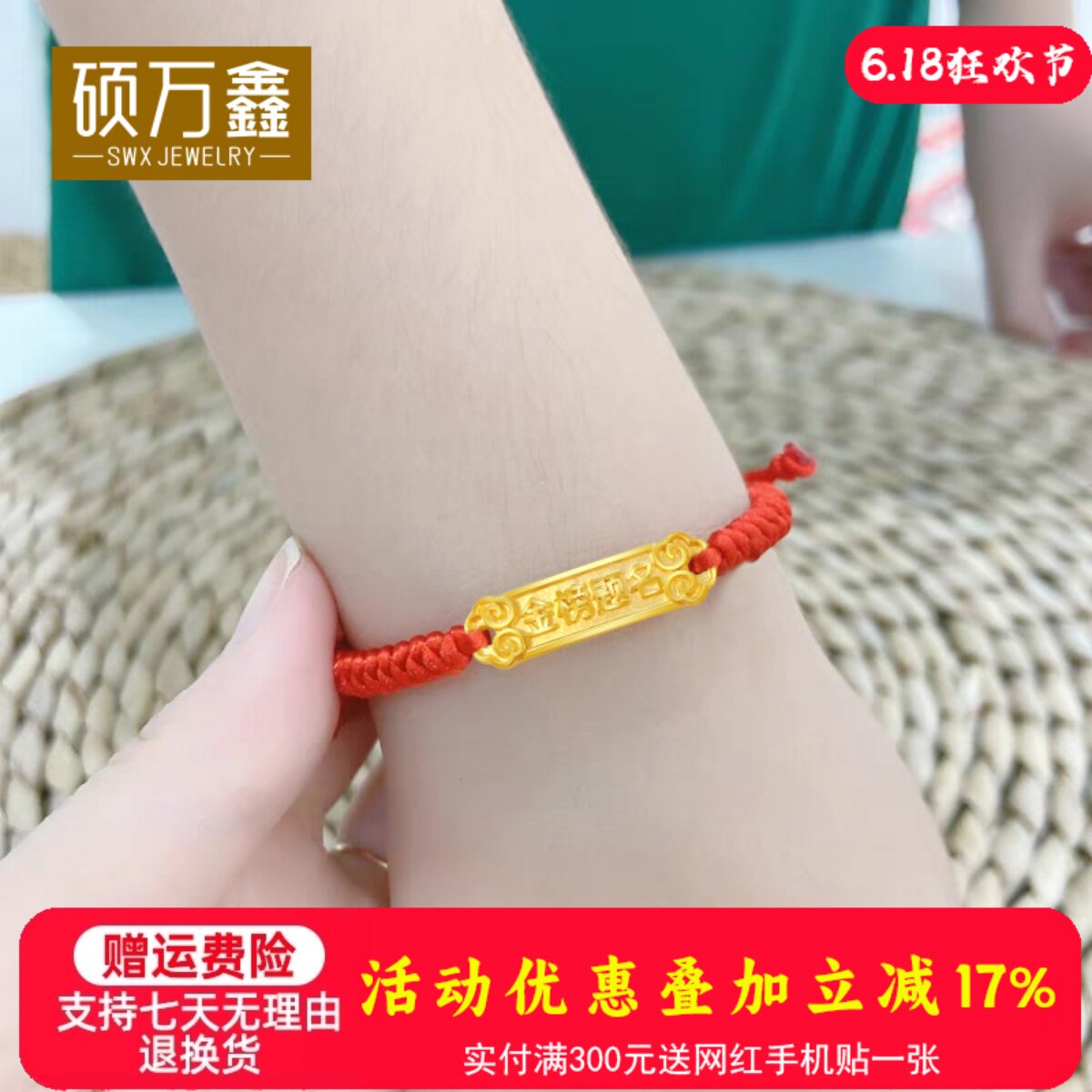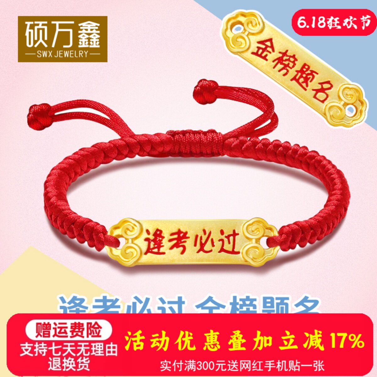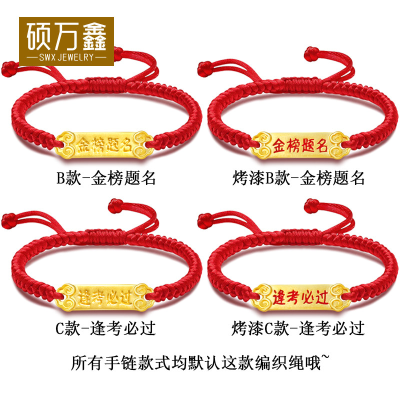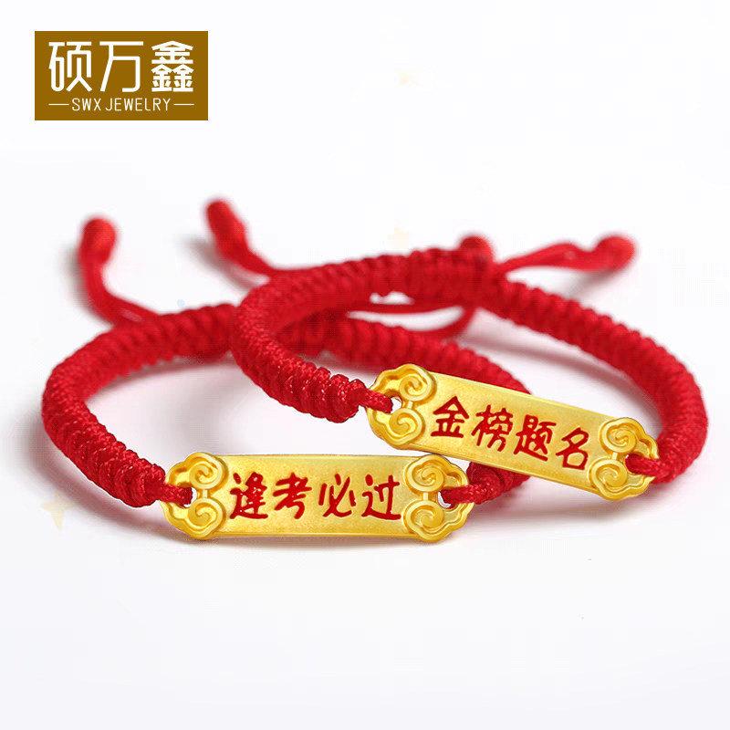 999足金逢考必过红绳手串送礼5D黄金中高考金榜题名金饰硬金手链