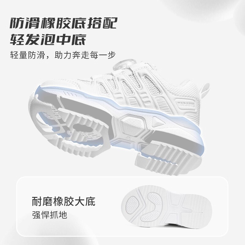 泰兰尼斯儿童运动鞋男童时尚老爹鞋旋钮跑步鞋女童休闲校园小白鞋
