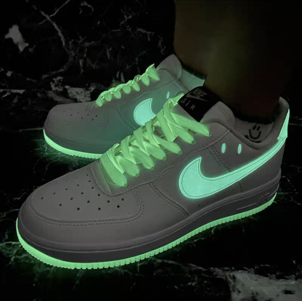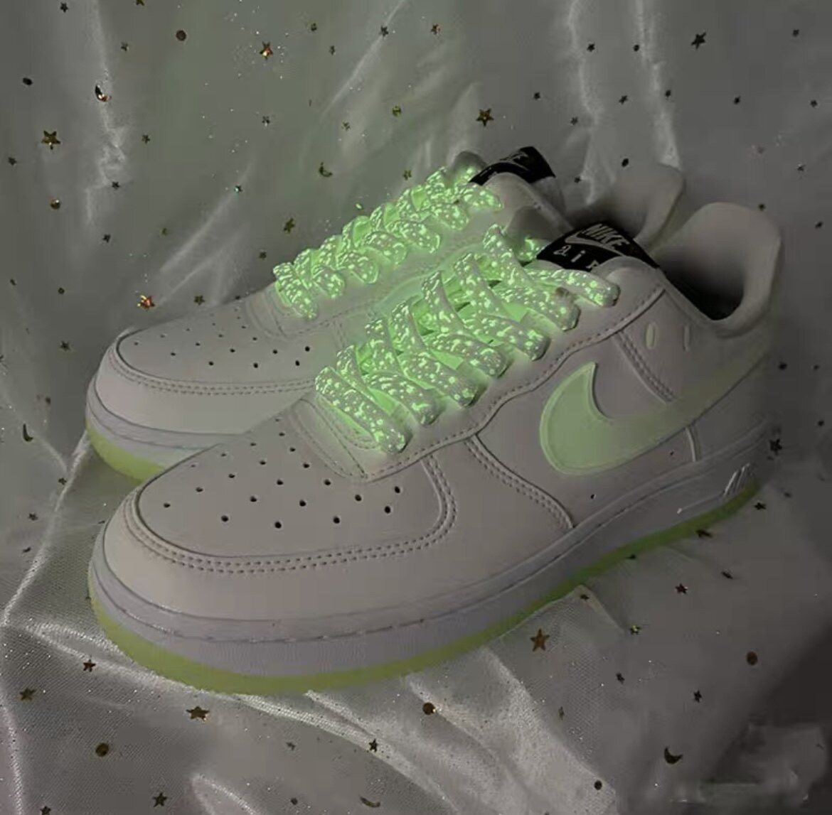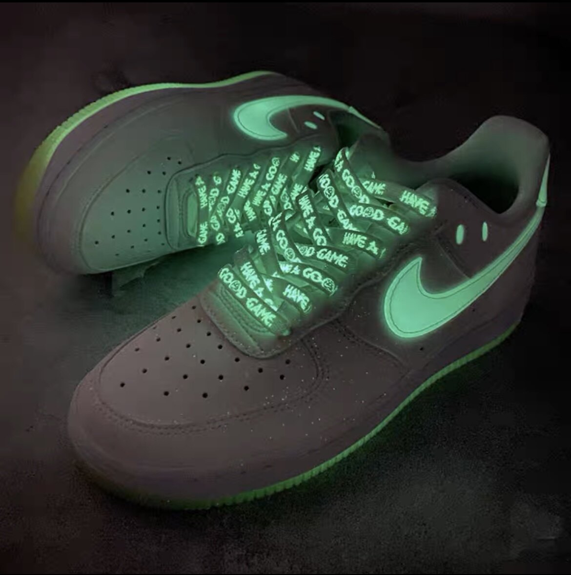 夜发光鞋带have a nike day笑脸适配空军一号AF1白绿腰果花鞋绳