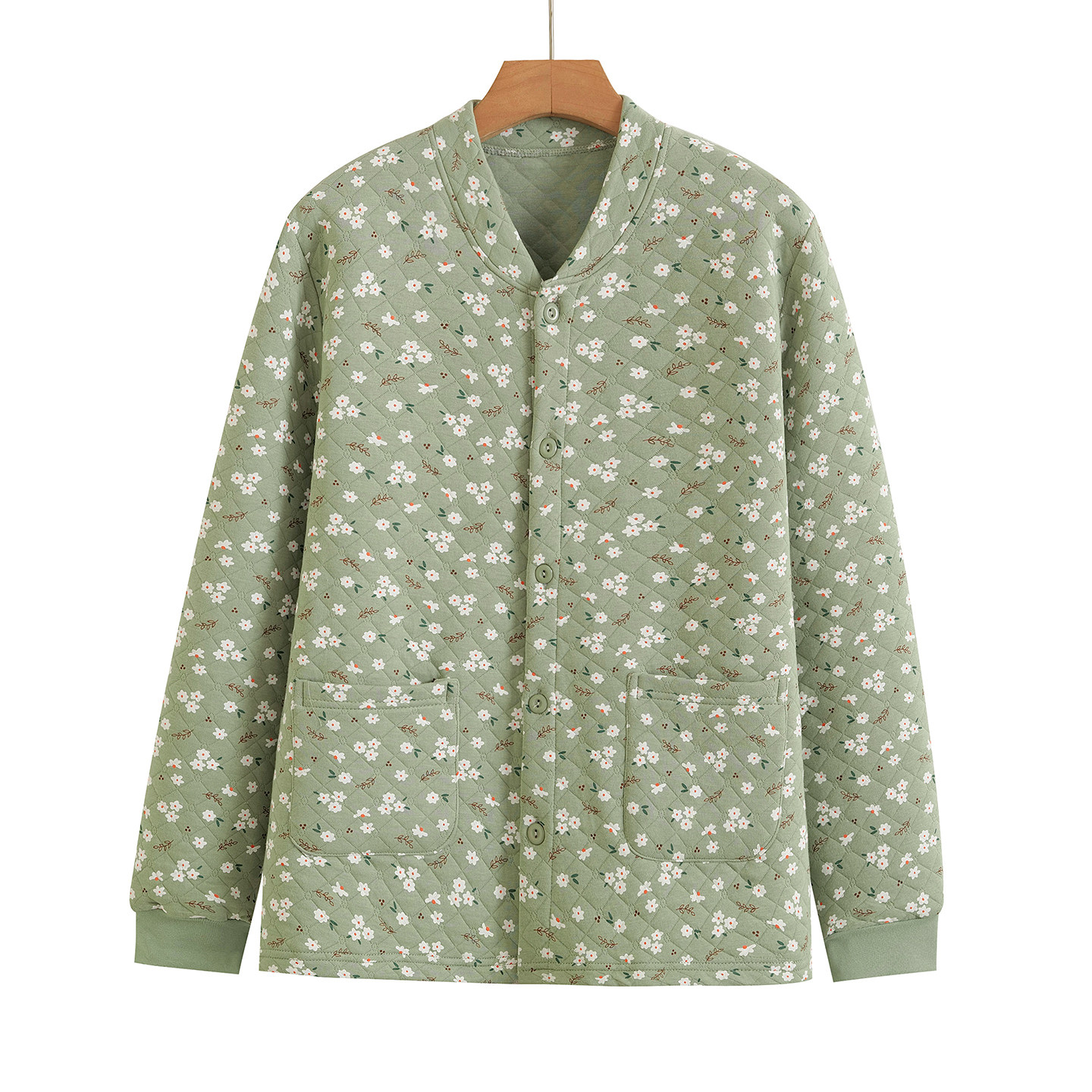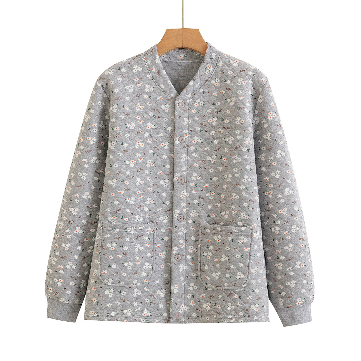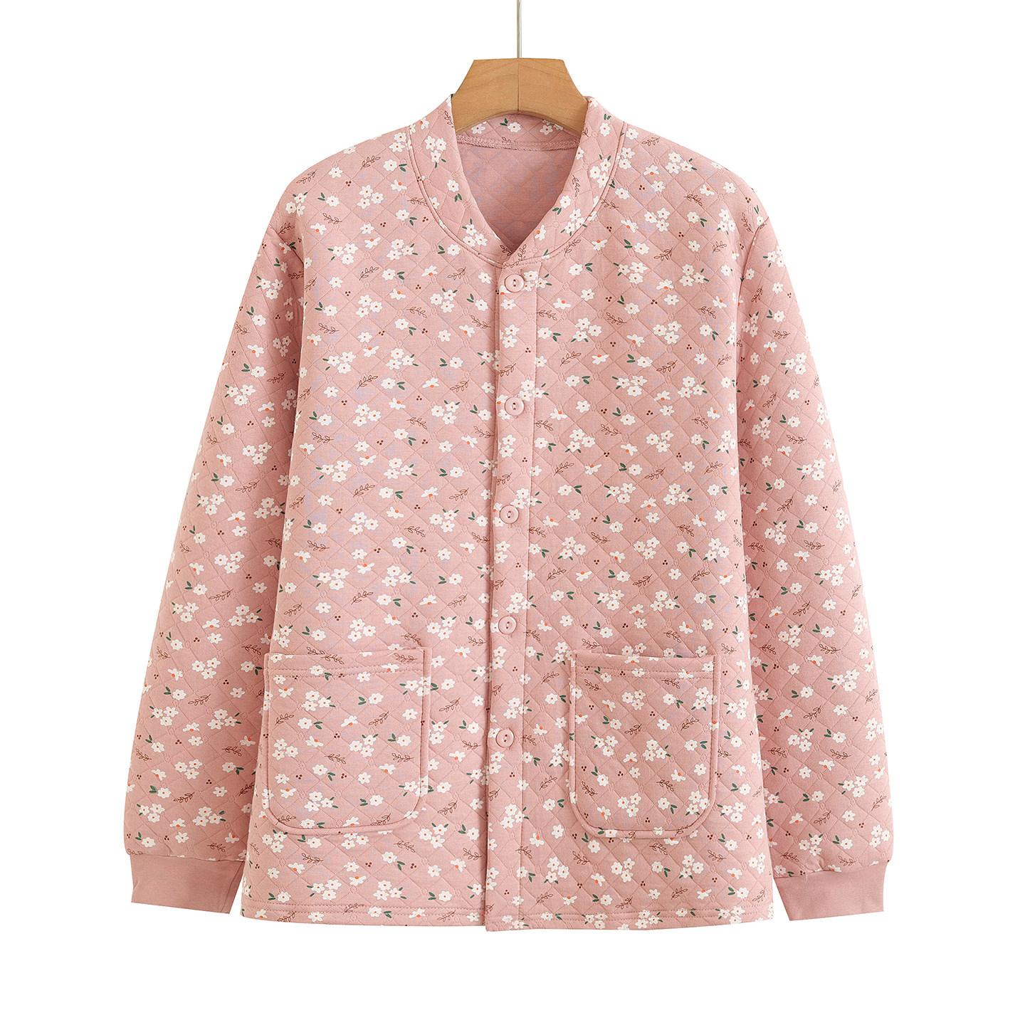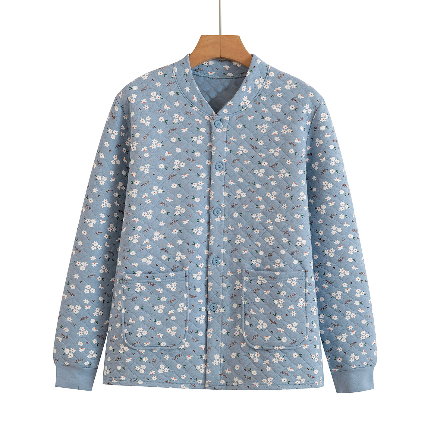 女纯棉三层开衫保暖上衣老人加厚对襟秋衣中老年宽松对襟家居睡衣