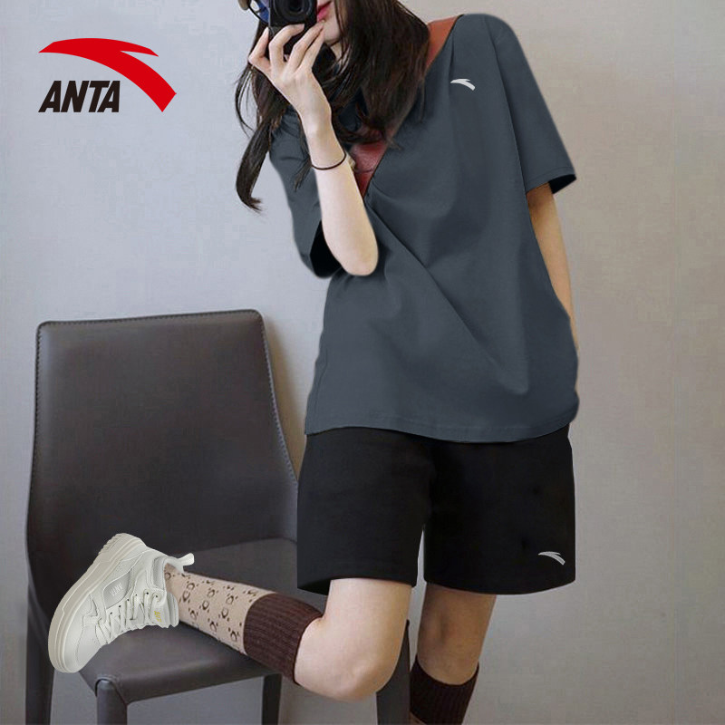 安踏运动套装女夏季宽松休闲短袖短裤透气中考体测学生速干跑步服