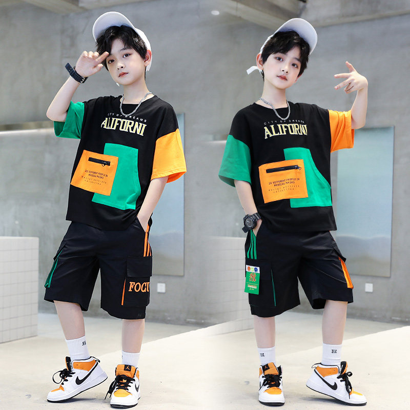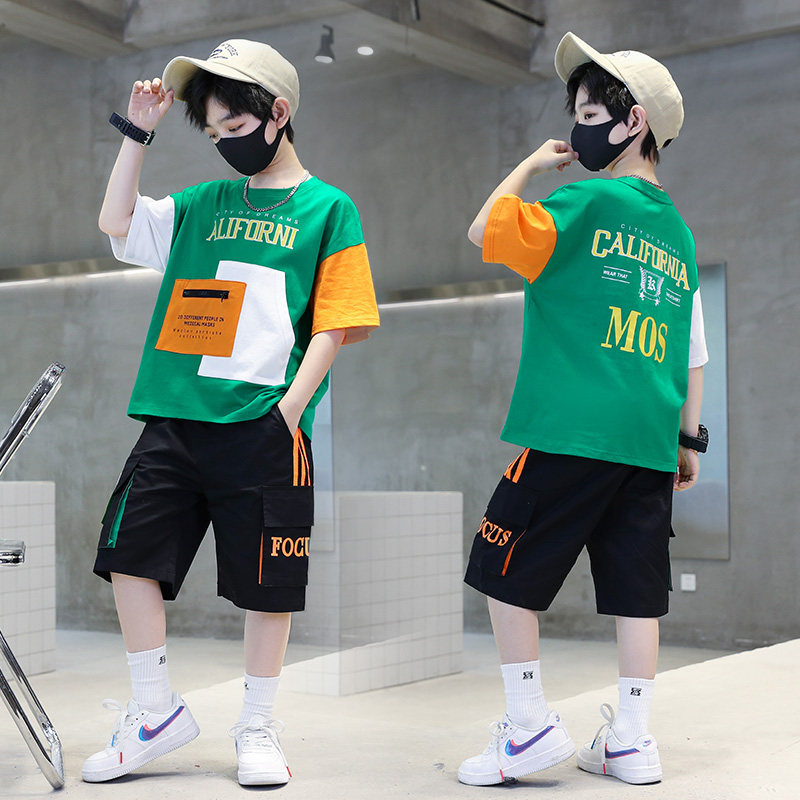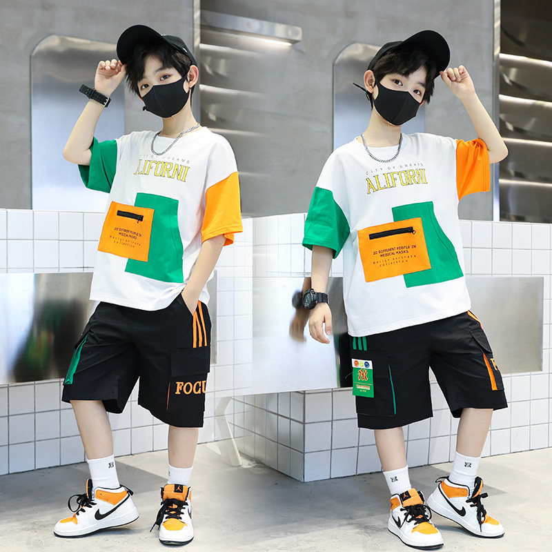 男童纯棉套装夏款短袖2023新款韩版运动男孩宽松夏季薄款两件套潮