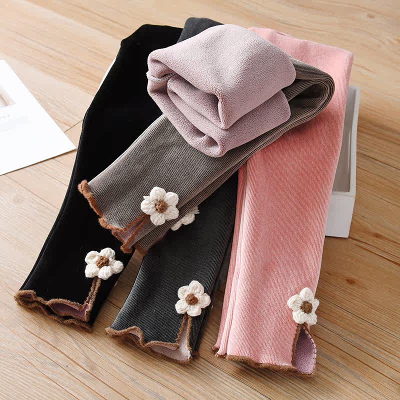 女童加绒打底裤春秋女宝宝薄绒底裤童装秋冬外穿裤子儿童束脚绒裤