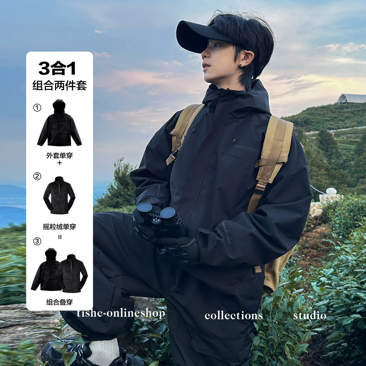 男童冲锋外套加厚三合一可拆卸2026新款儿童青少年摇粒绒春装潮牌