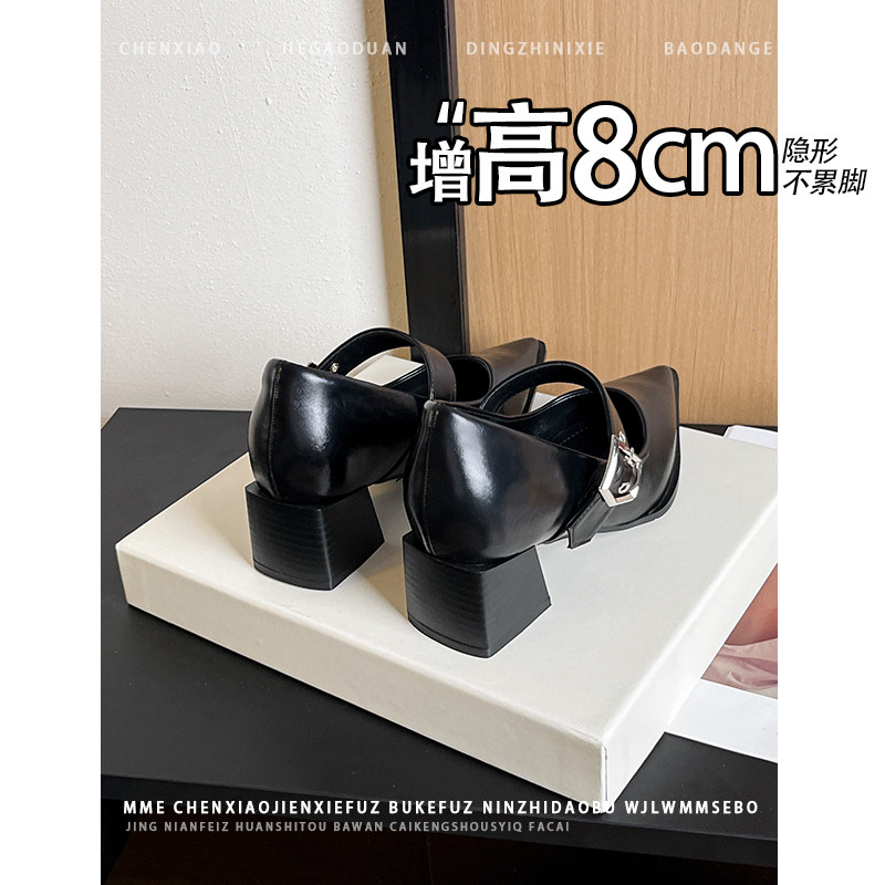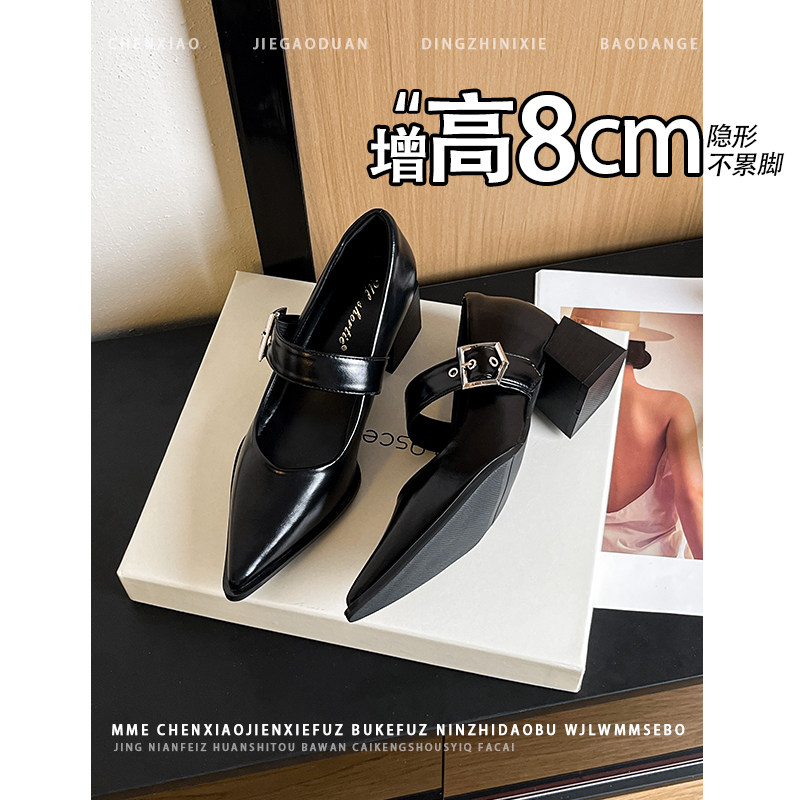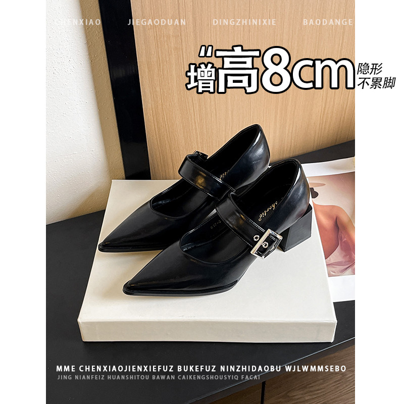 不累脚!内增高8CM尖头浅口玛丽珍鞋2026春新款小个子粗跟单鞋女