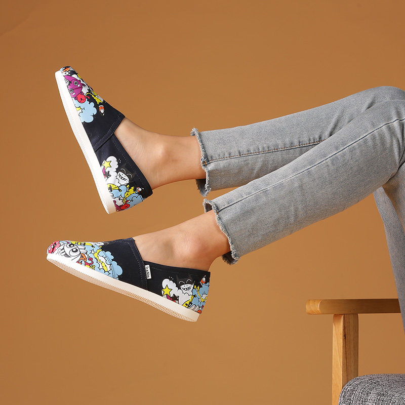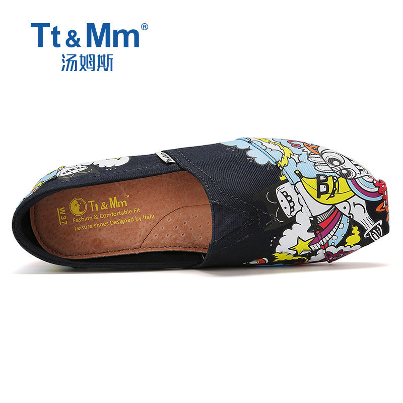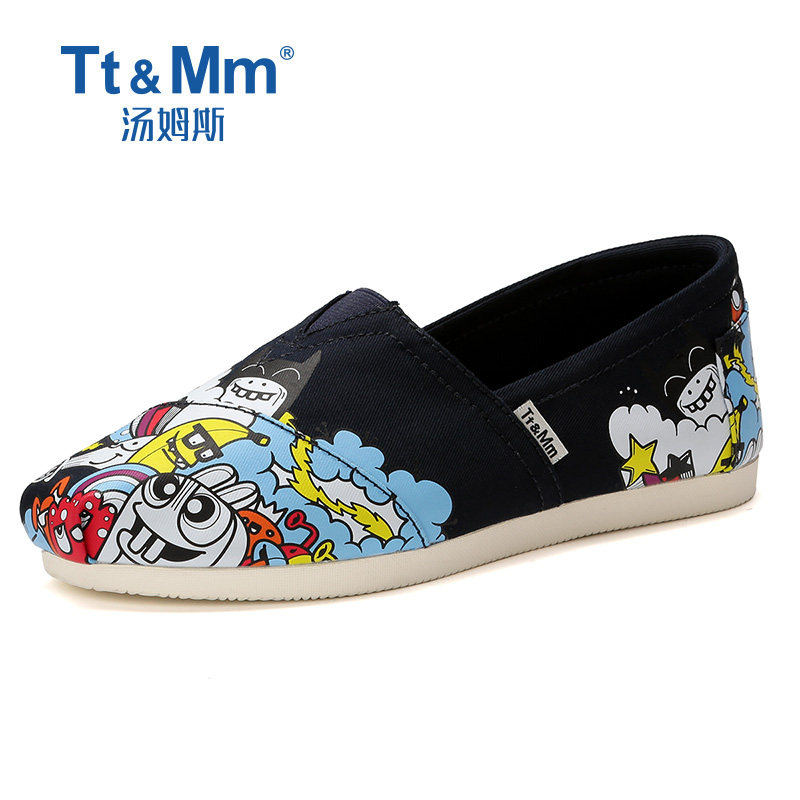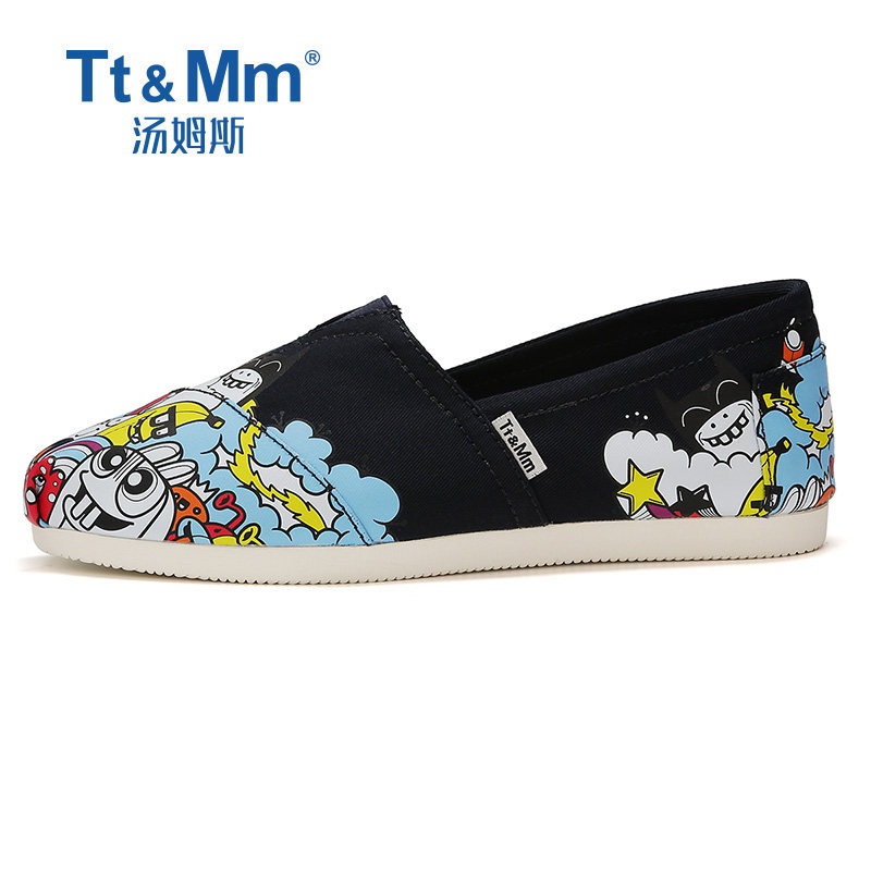 Tt&Mm/汤姆斯薄款女鞋平底低帮一脚蹬布鞋休闲夏季涂鸦软底帆布鞋