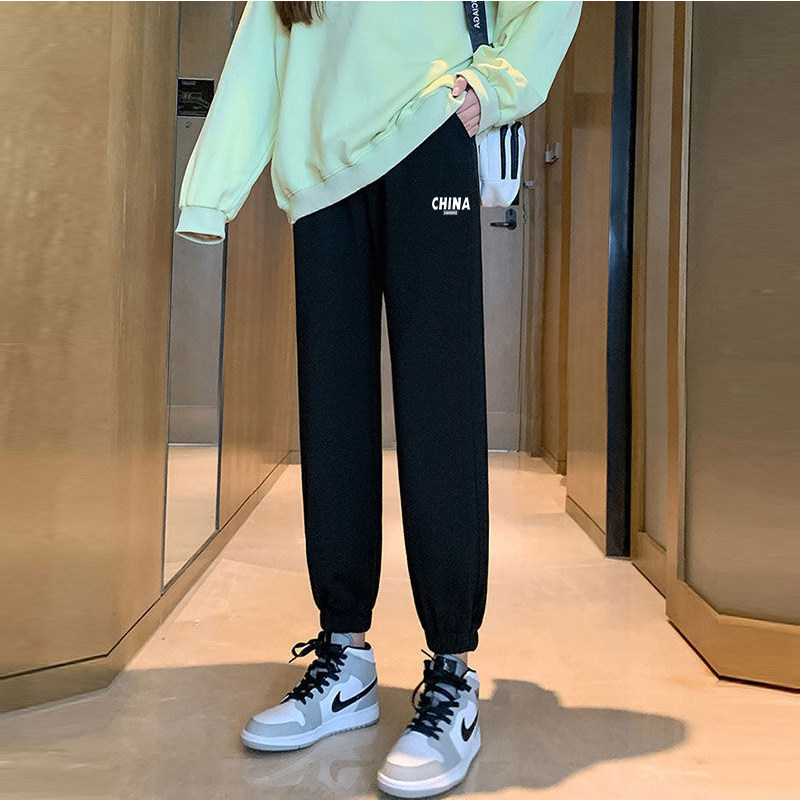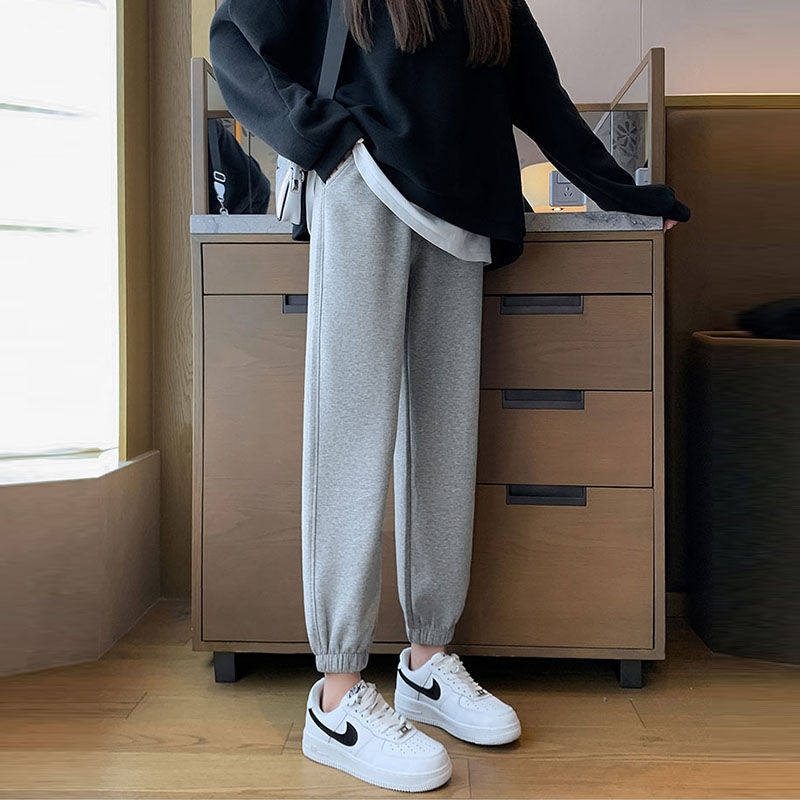 浙江杭州四季青女装运动裤新款外穿百搭宽松束脚加绒加厚休闲卫裤