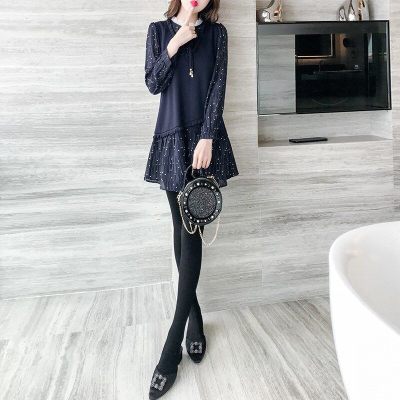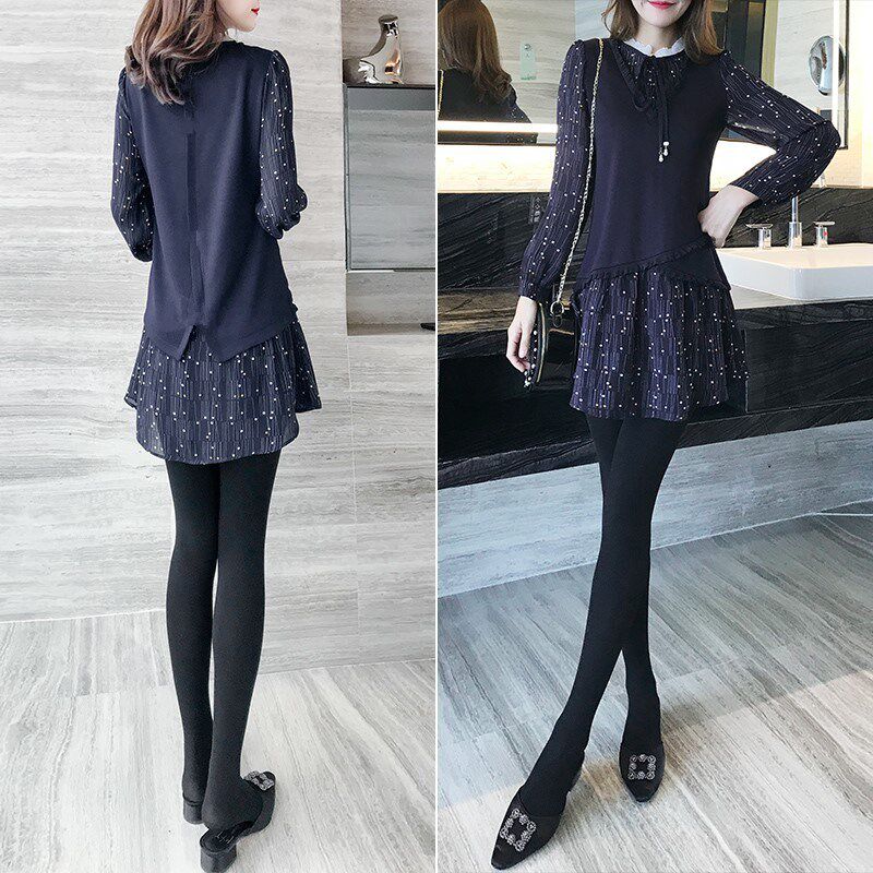 2024秋装新款法式气质小个子假两件长袖连衣裙女秋季碎花显瘦裙子