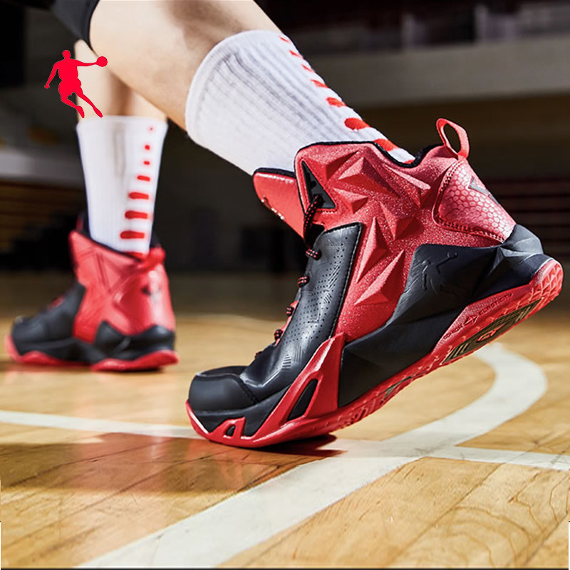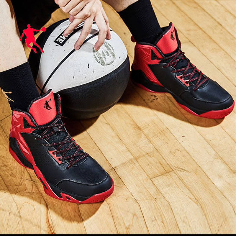 乔丹红色篮球鞋高帮皮面防水运动鞋正品青少年学生比赛训练战靴子