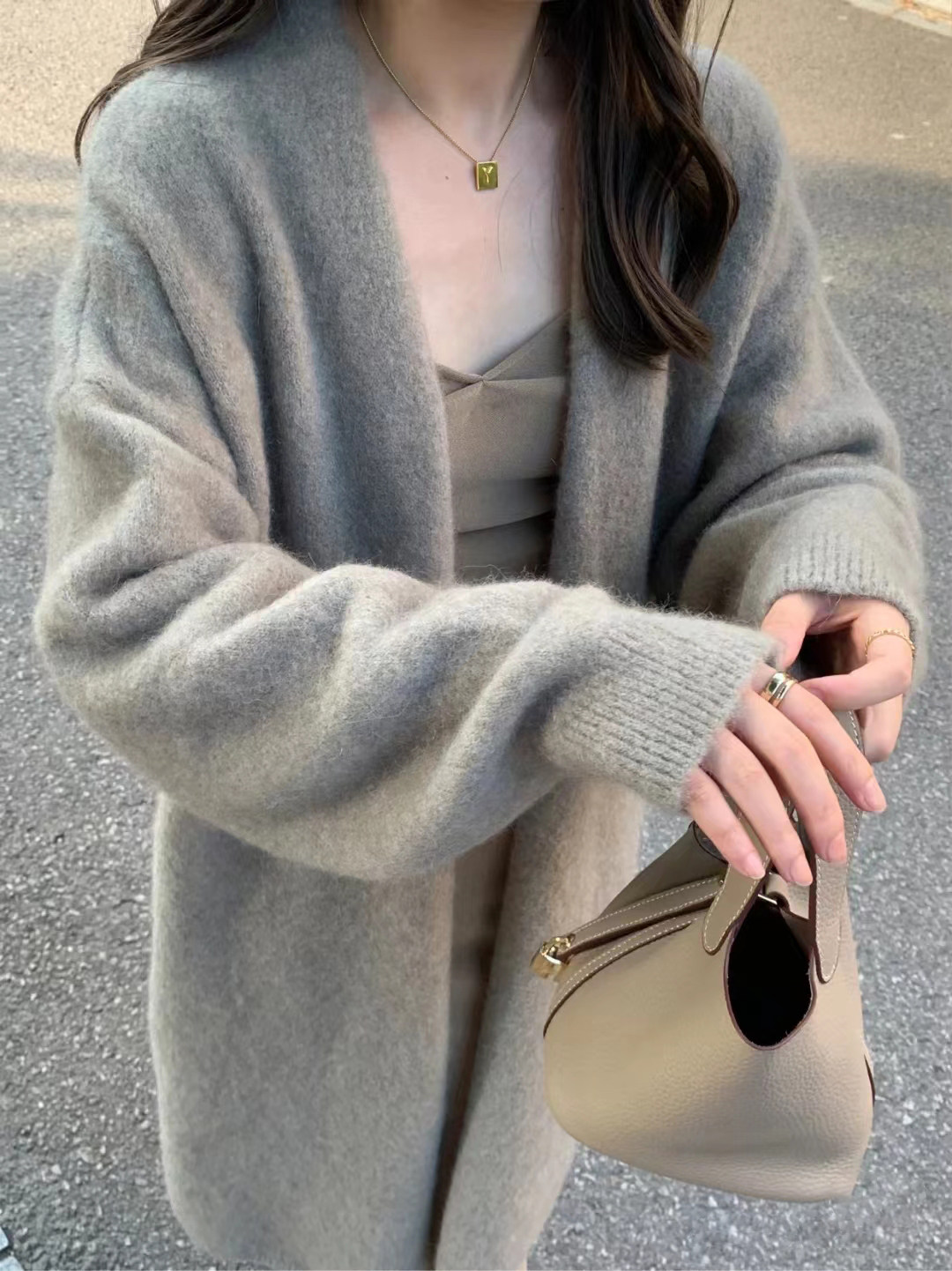 高级感超好看的毛衣女秋冬慵懒味复古chic中长款针织开衫加厚外套