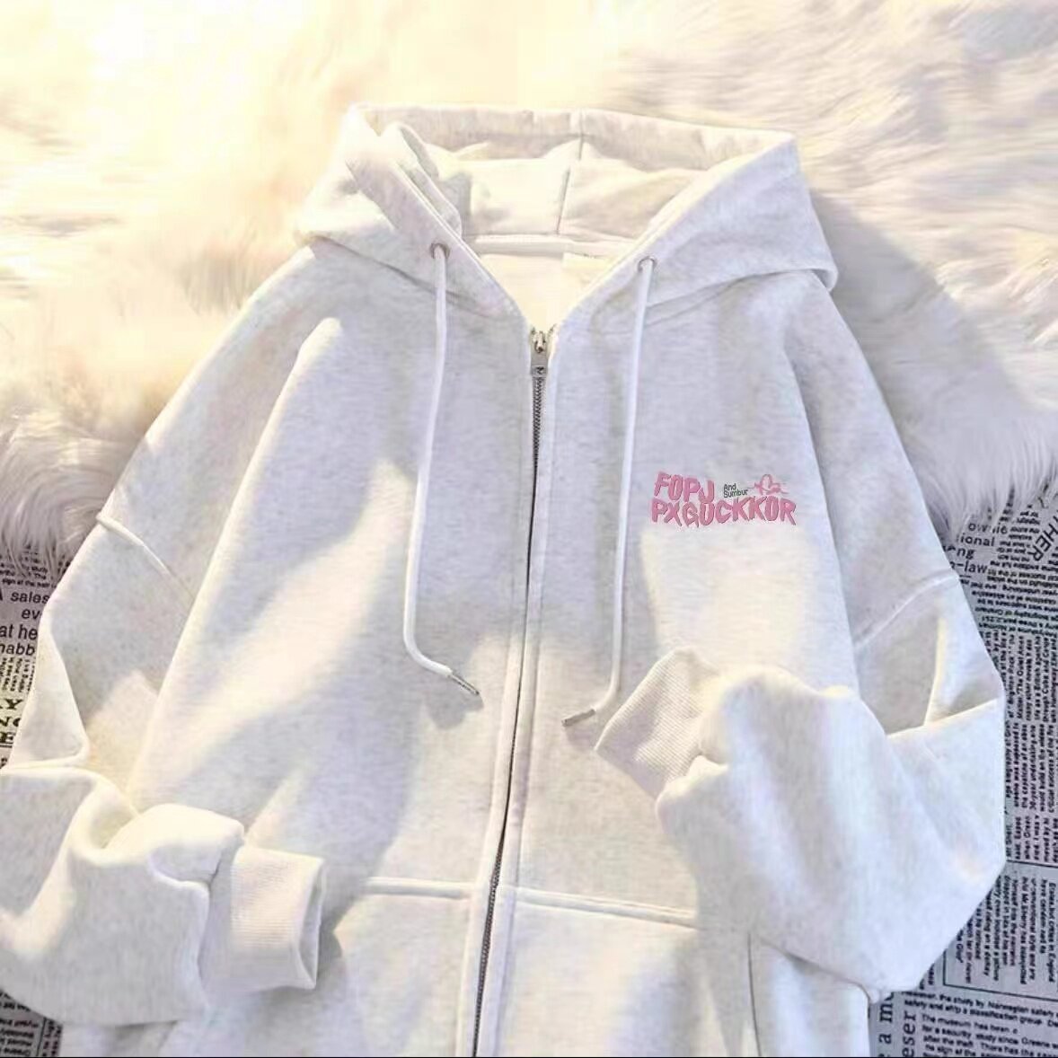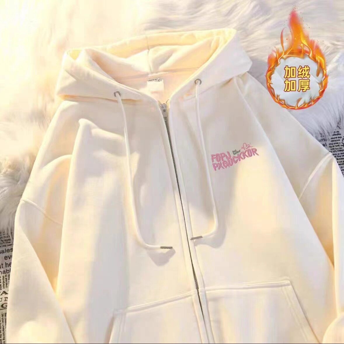女童秋冬韩范宽松慵懒风加绒开衫拉链连帽卫衣新款中大童薄款外套