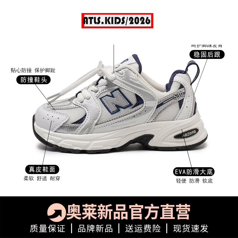 官网530儿童运动鞋2026新款春款网面透气女童鞋子跑鞋男童网鞋白