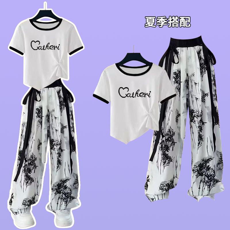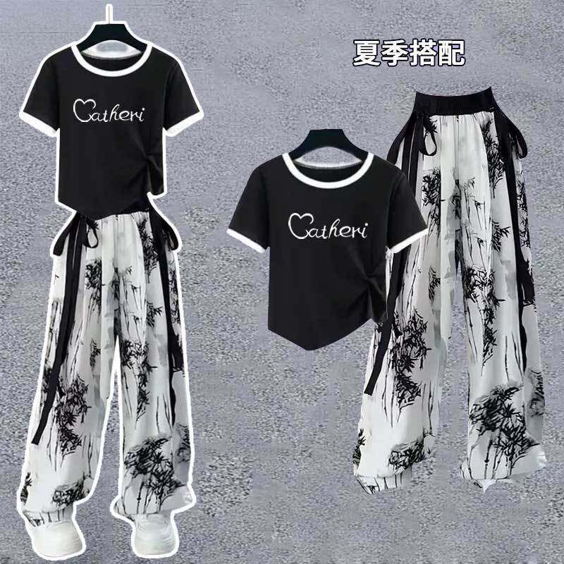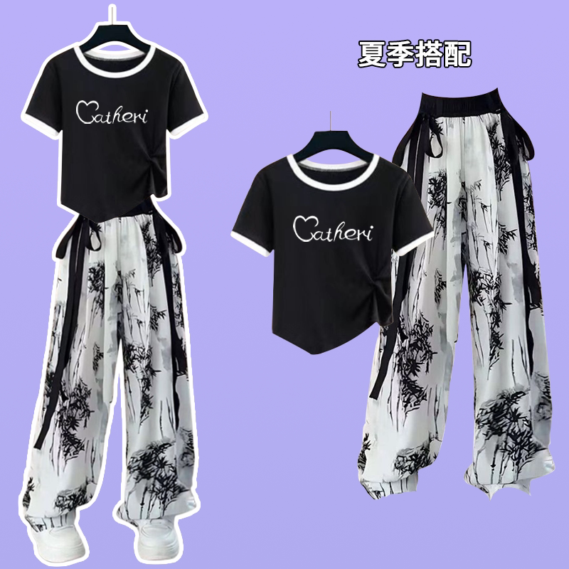 超好看女童短袖t恤套装潮牌2026夏季新款中大童国风短款薄款上衣