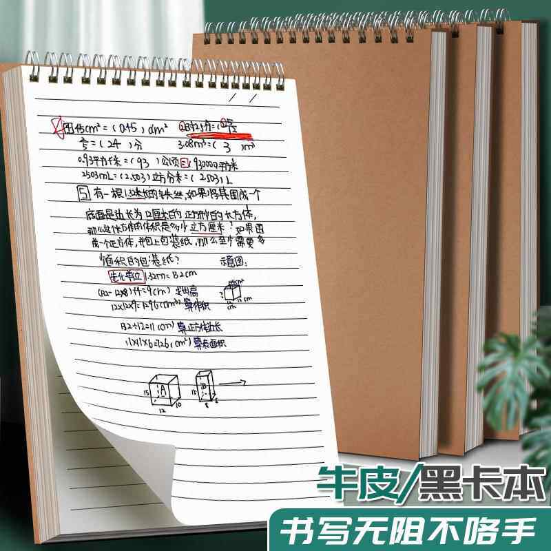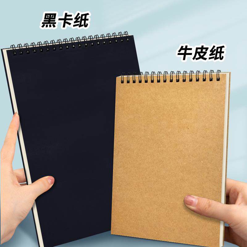 活页本牛皮纸上翻线圈本空白方格本子A5网格黑卡笔记本学生考研本