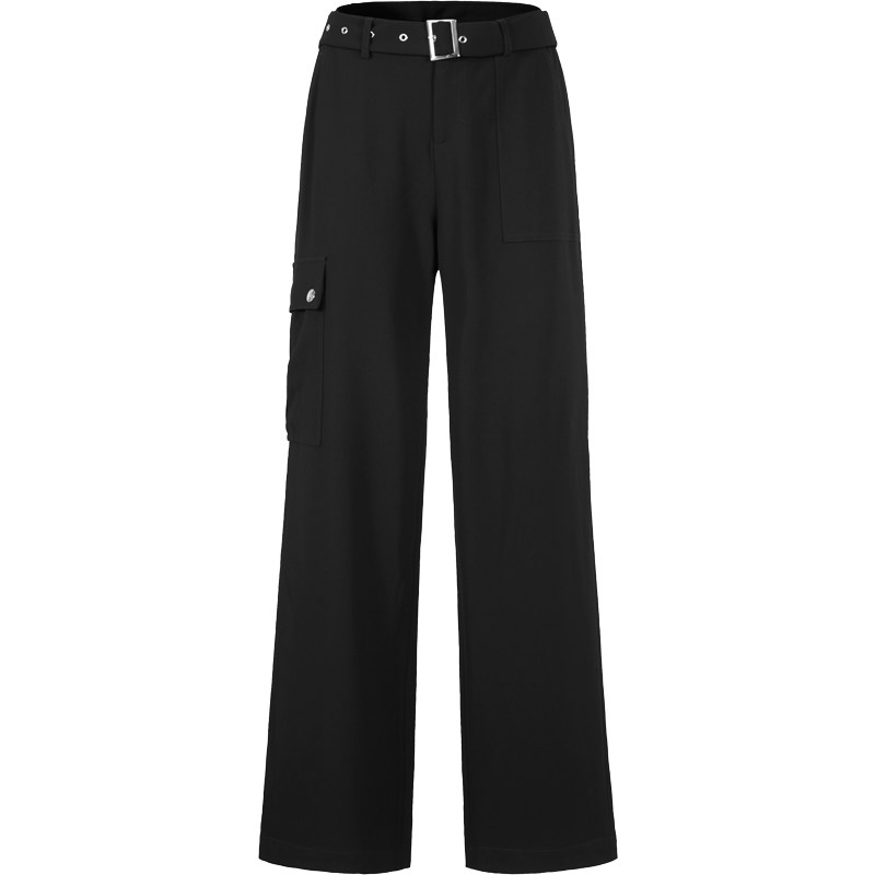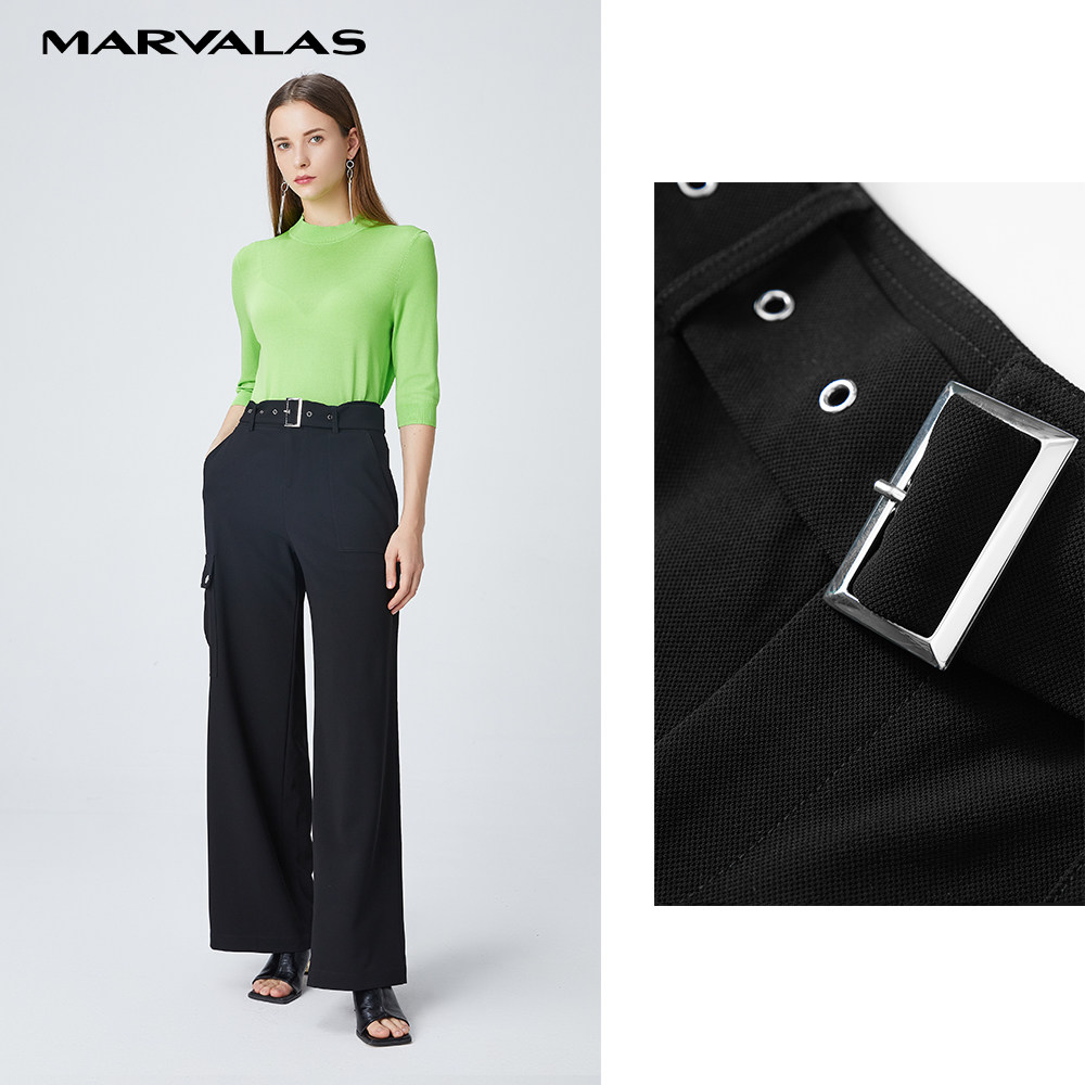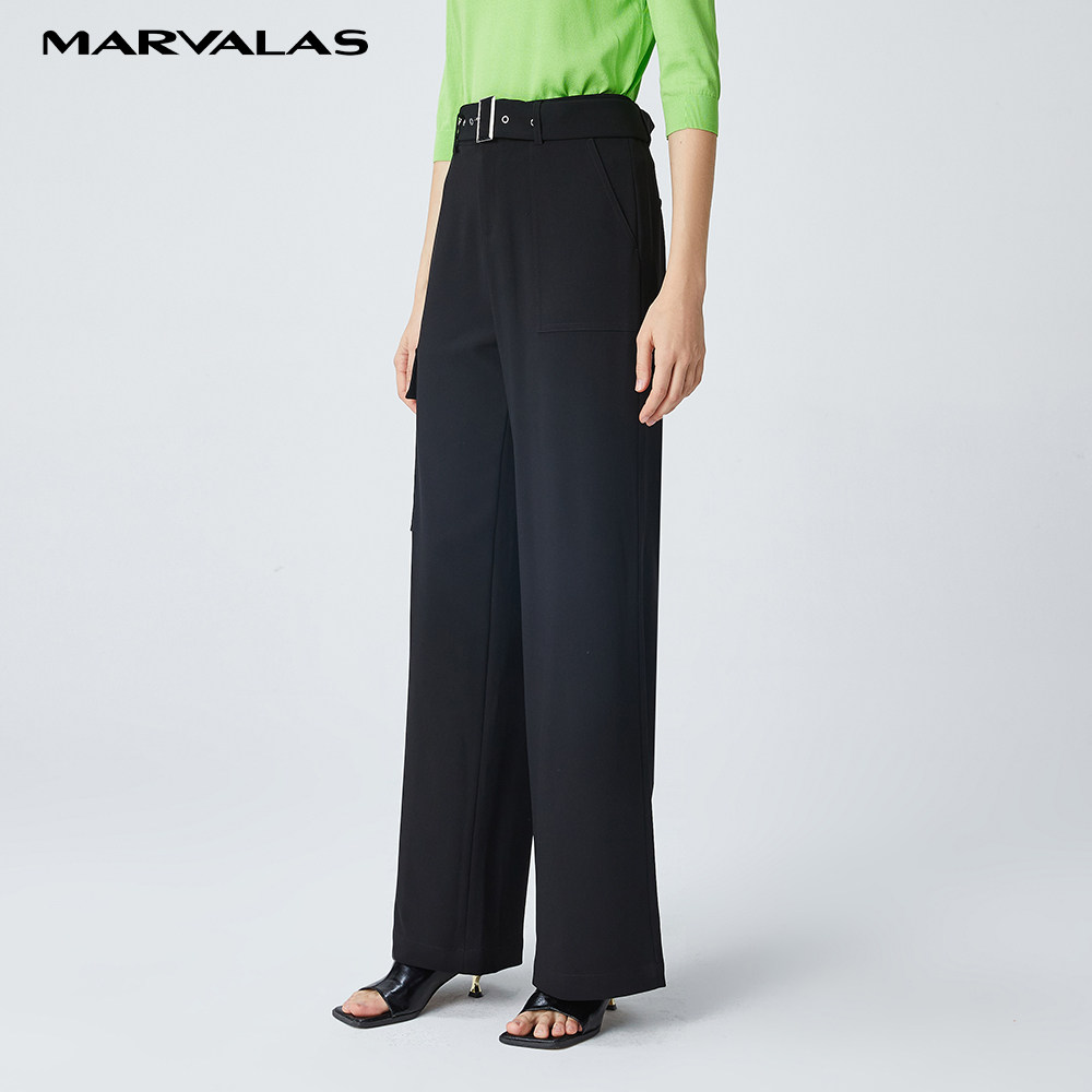 曼德诗黑色高腰阔腿裤女款2026夏季新款薄款宽松直筒垂感西装裤子